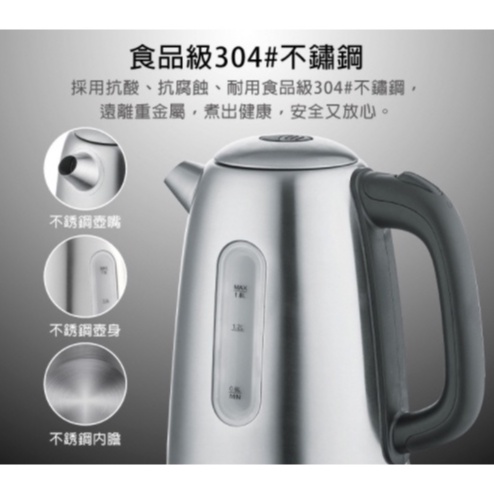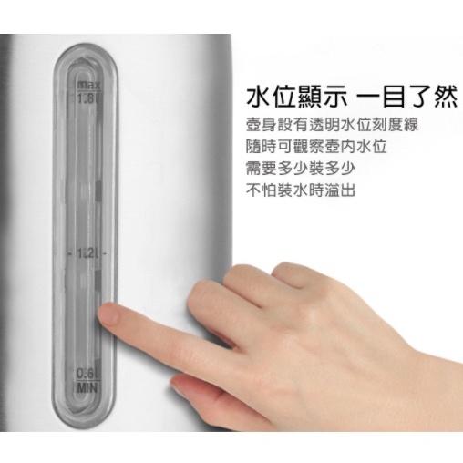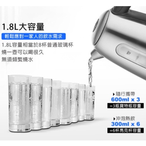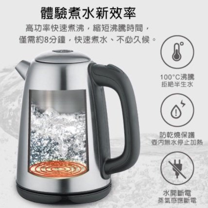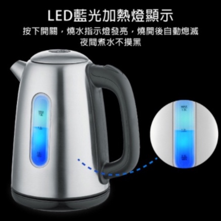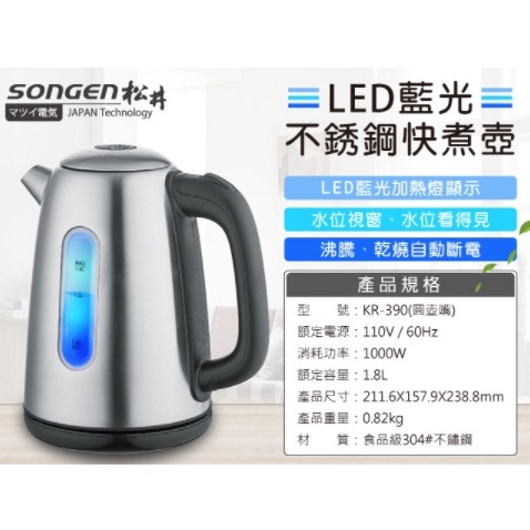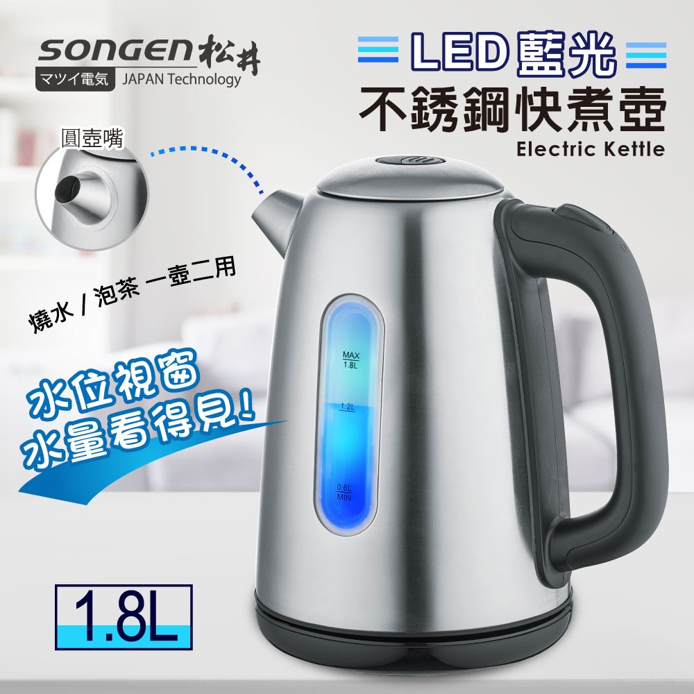 快煮壺 ▍1.8L 電水壺 不鏽鋼 LED藍光不銹鋼快煮壺電水壺(KR-390圓壺嘴) SONGEN松井 泡茶 泡麵