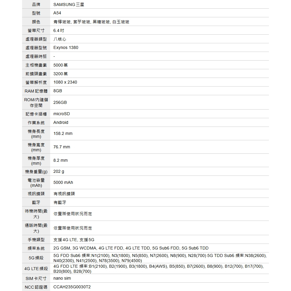 Galaxy A54 5G(A5460)/ 6+128G、8+256G 6.4吋【台灣原廠公司貨】福利品附發票 三星手機