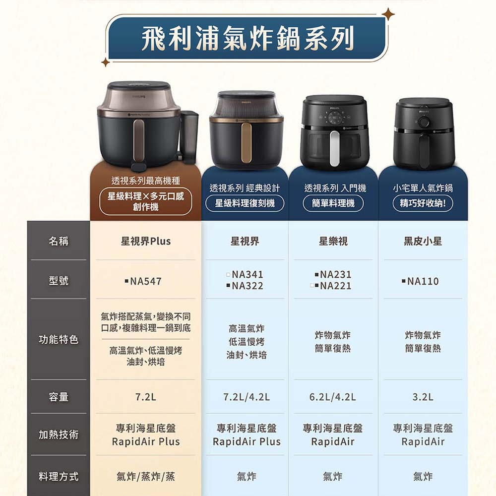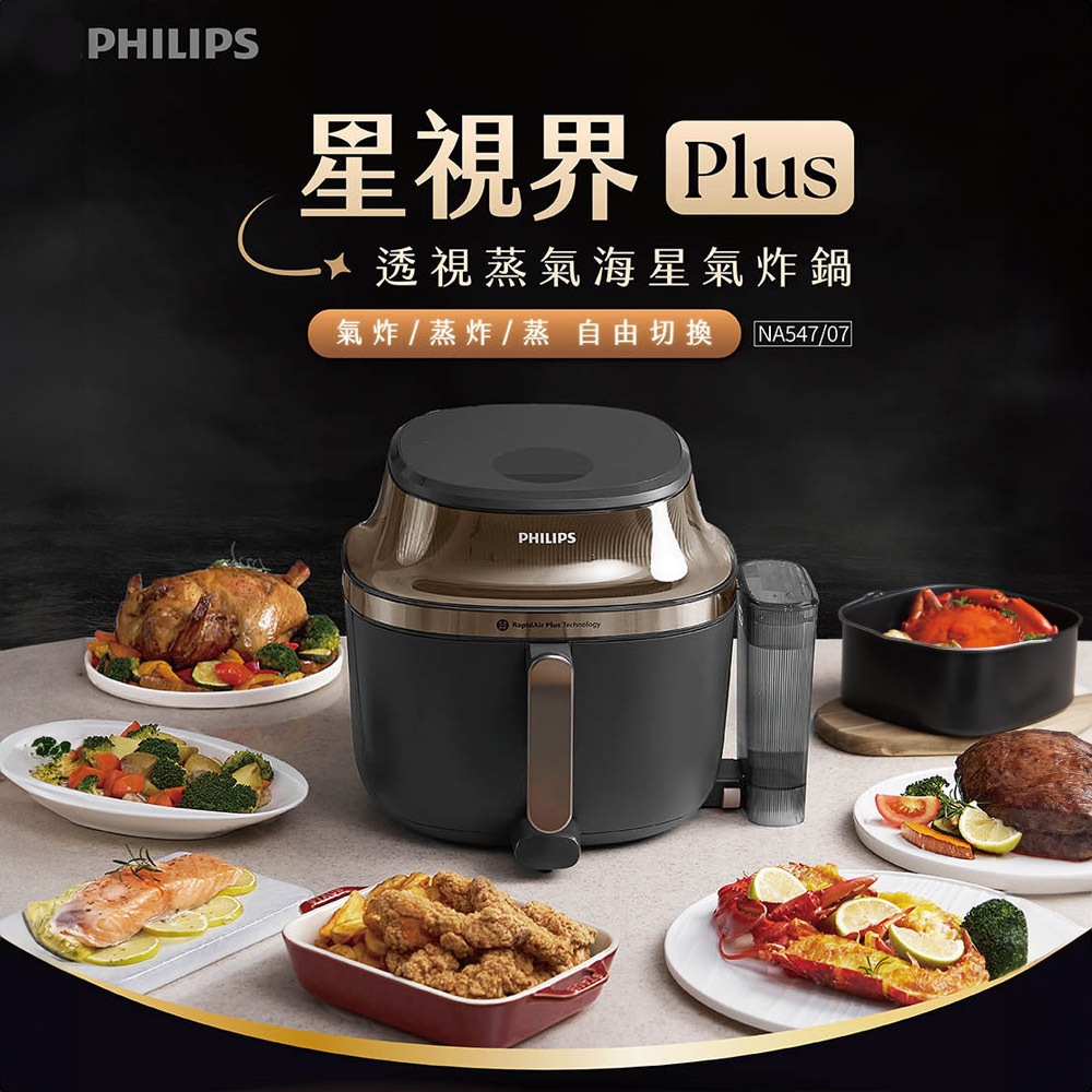 【Philips 飛利浦】星視界Plus透視蒸氣海星氣炸鍋7.2L-NA547/07-贈食譜書