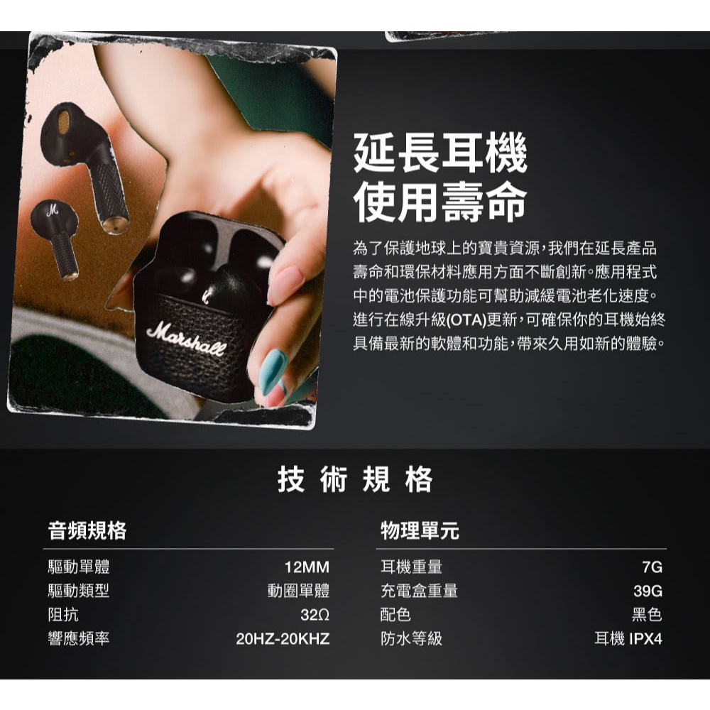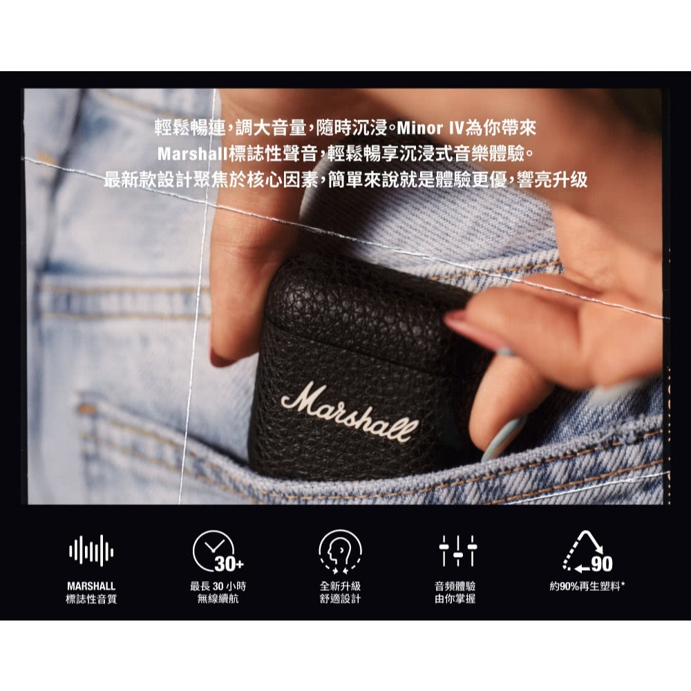 Marshall Minor IV 真無線藍芽耳機 第四代(經典黑)