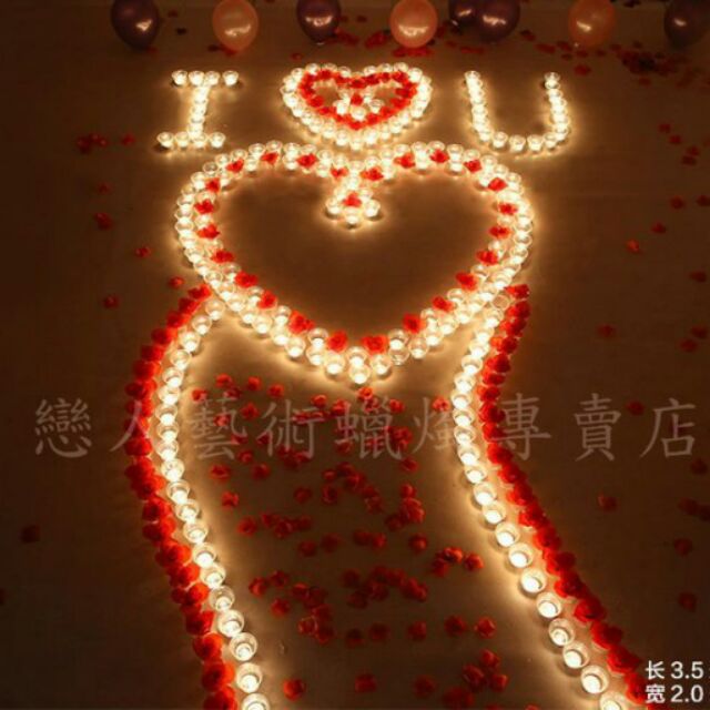 超浪漫防風300顆蠟燭排字路引套餐(搭配紅白兩種顏色蠟燭)燭芯特別加粗,火焰大一些,更亮不易熄,附贈仿真玫瑰花瓣+範例圖