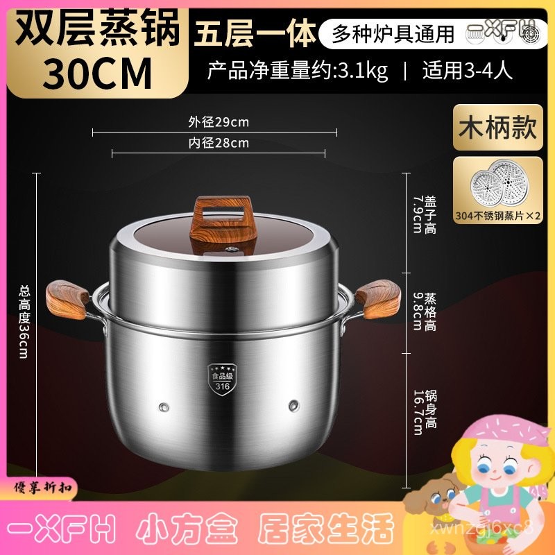 XFH-蒸鍋316不銹鋼加厚蒸籠屜多層大容量蒸煮燉家用電磁爐燃氣專用304 MNYI