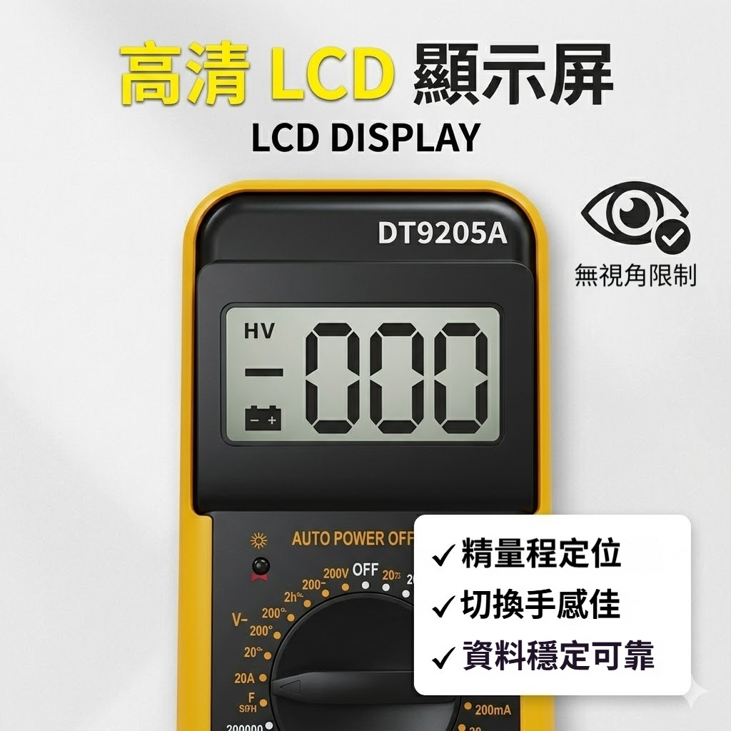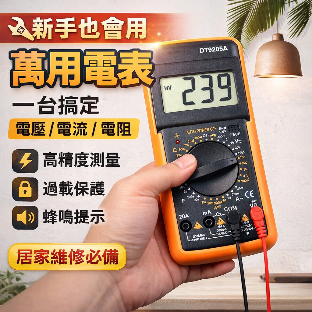 【台灣現貨 24H出貨】數位三用電表 大螢幕 智能防燒|自動關機 附電池探針 萬用電錶 電壓表 送電池