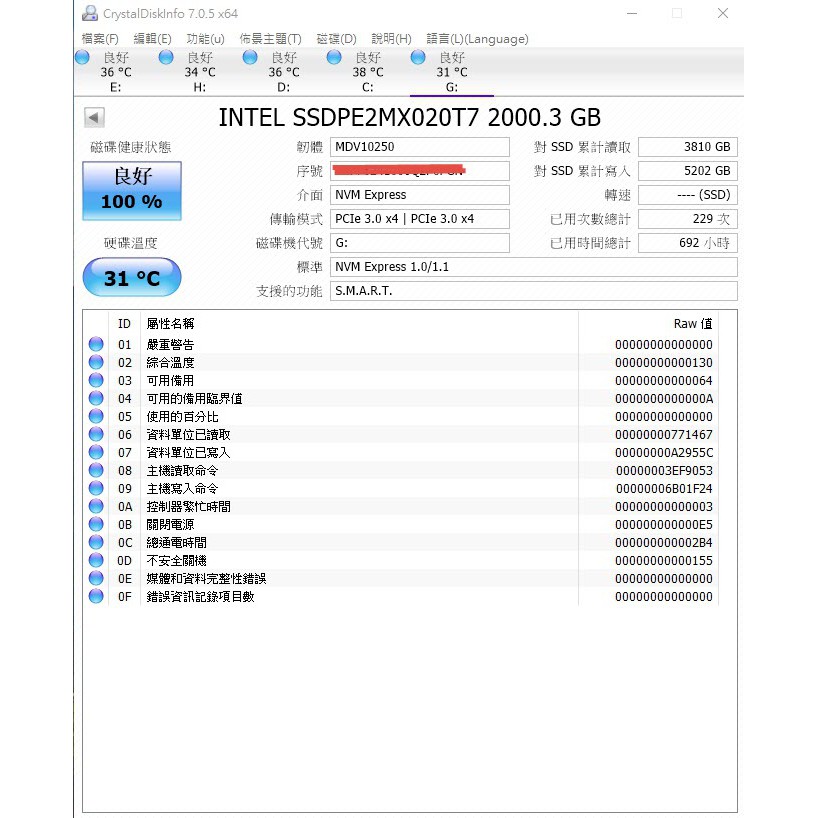 Intel SSD DC P3520 2.0TB U2介面 3D NAND MLC