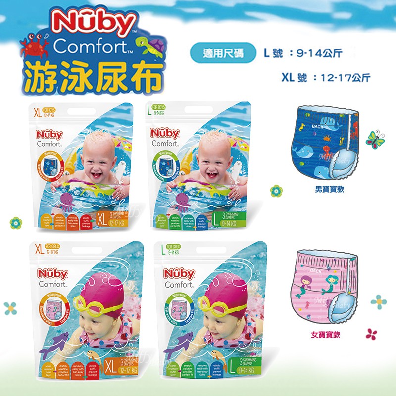 【Nuby】游泳戲水褲L-XL(3片裝) 游泳尿布-Miffybaby