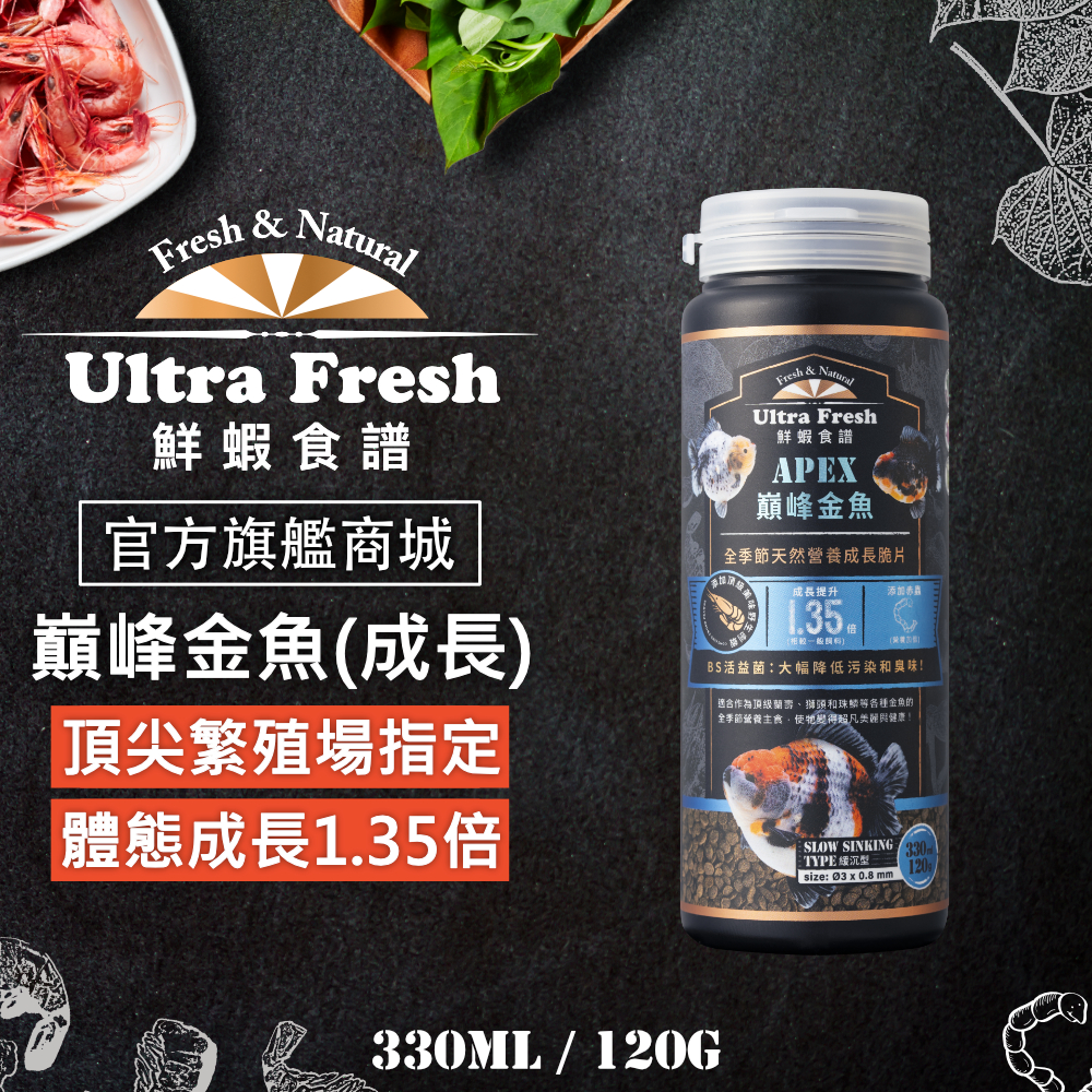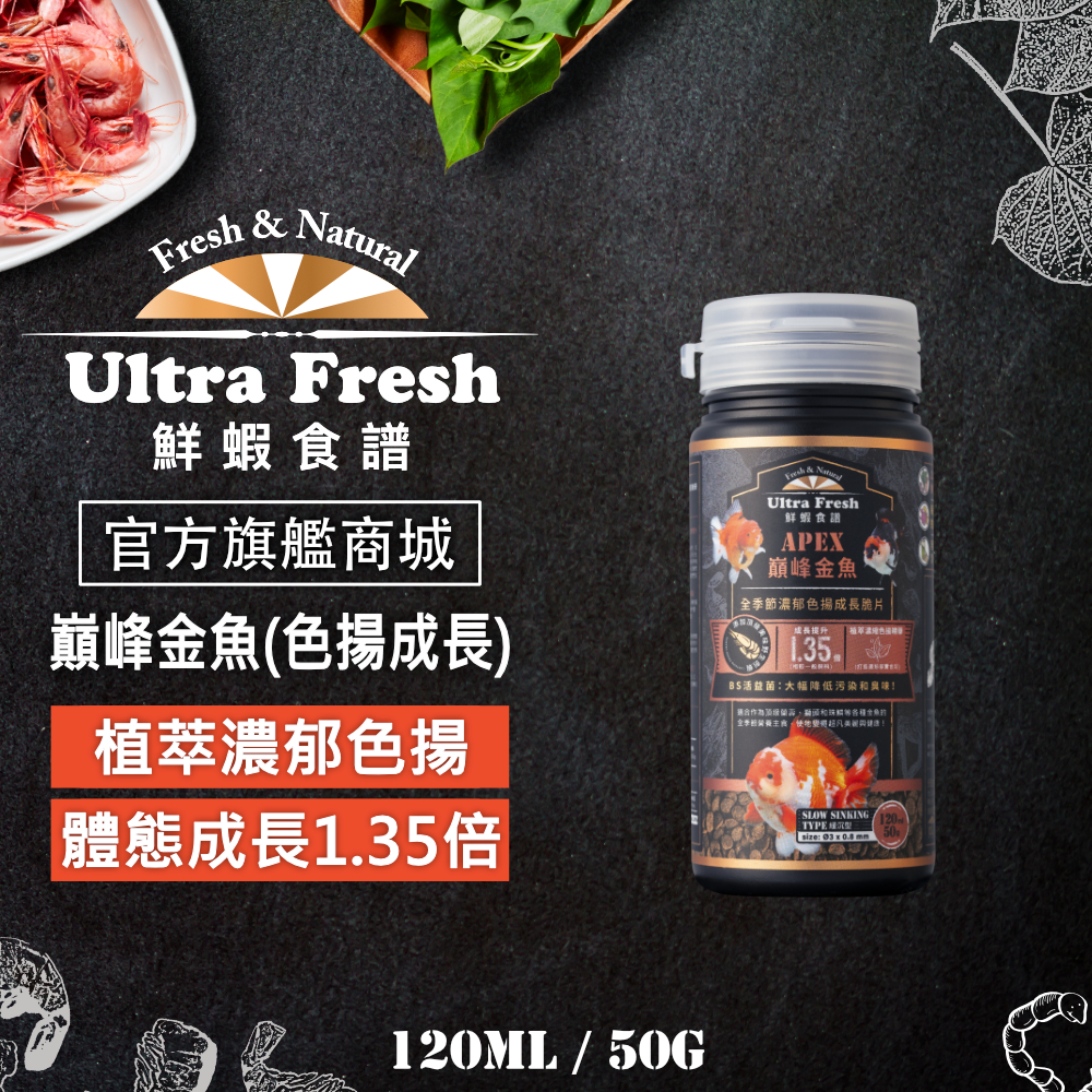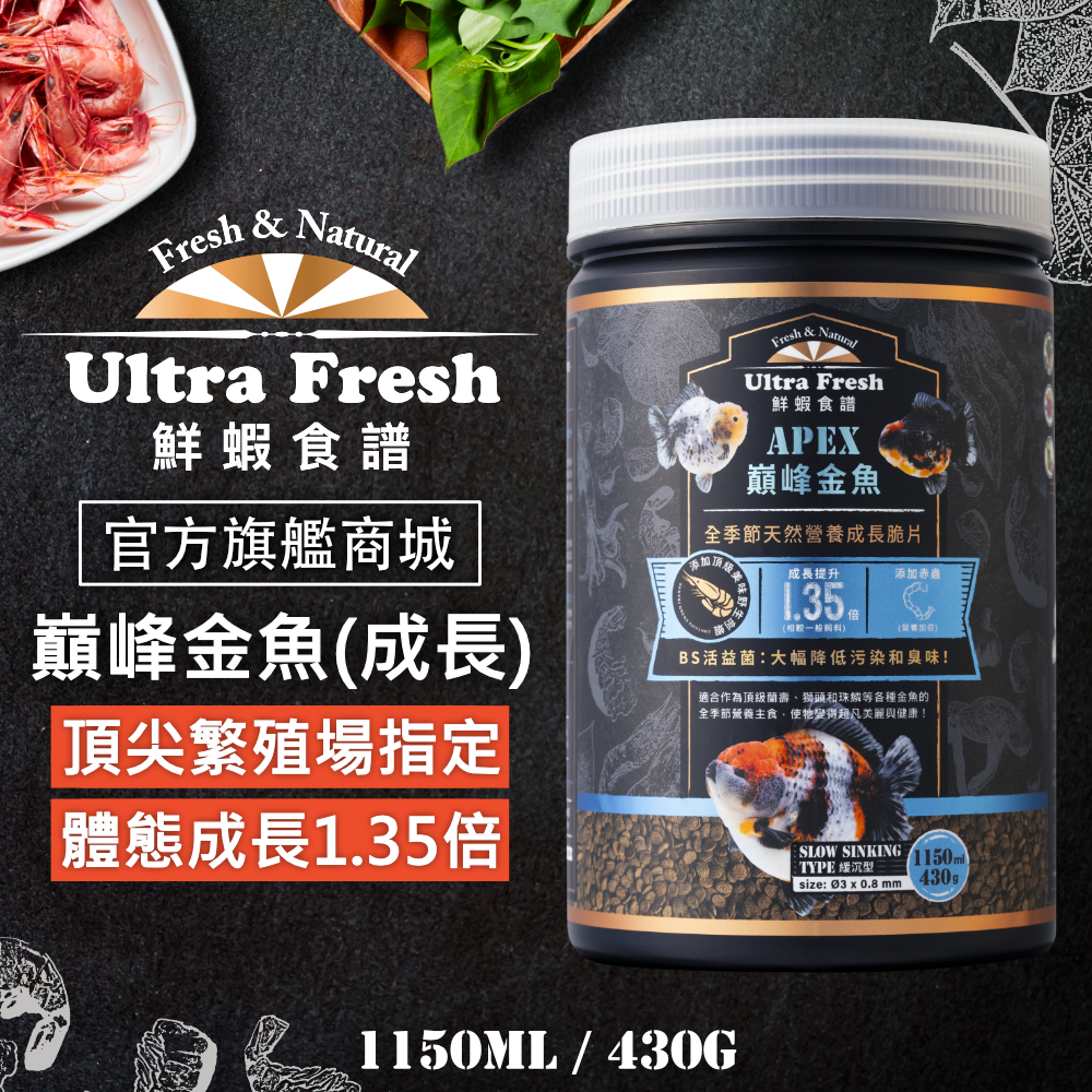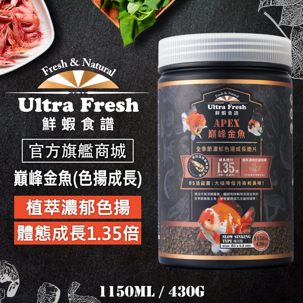 鮮蝦食譜 APEX金魚飼料 | 體態成長1.35倍 高消化 色揚 緩沉型 競賽級配方 | 珠鱗飼料 蘭壽飼料 金魚飼料