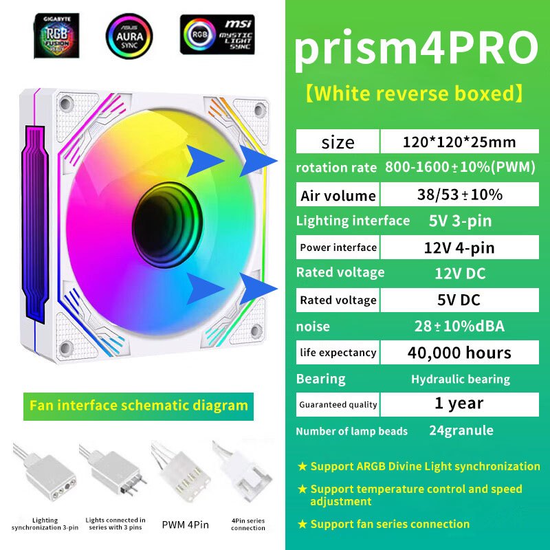 ARGB棱鏡四代7pro散熱風扇 神光同步 發光超靜音黑色白色二代四代彩光 12CM發光超靜音稜鏡4pro風扇臺式