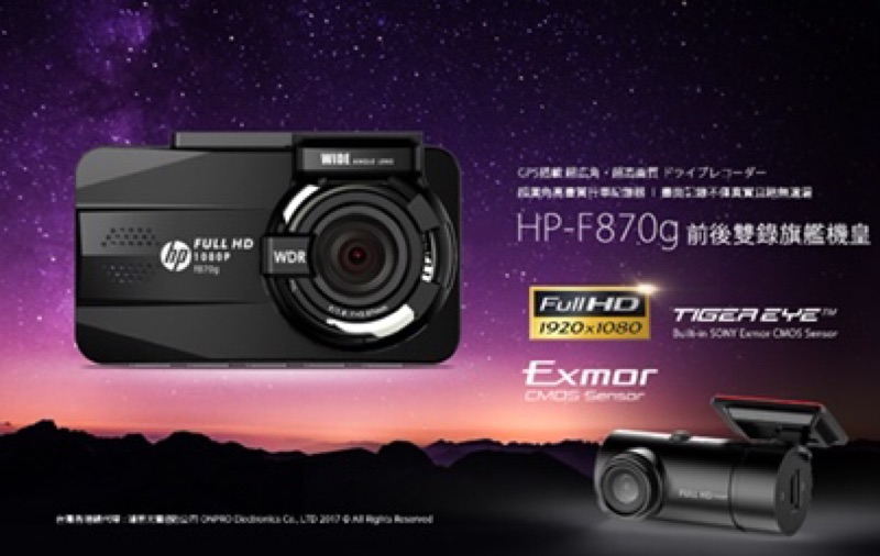 「實體店面」HP惠普 F870G SONY感光元件 前後雙鏡頭 GPS測 速提示高畫質行車記錄器 原價11990
