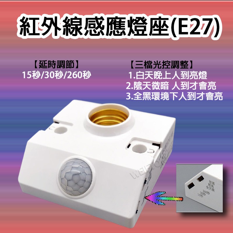 【二代款】人體感應燈座 E27 燈頭燈座 感光可調 紅外線感應燈座 環保感應 節能燈座 感應座 感應器 人體感應