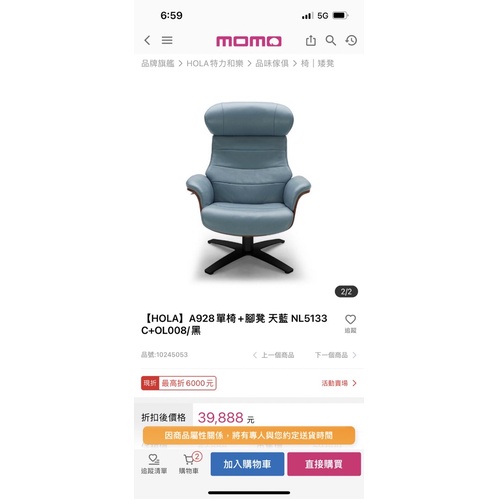 KUKA 沙發椅 九成新【HOLA】A928單椅+腳凳 天藍 NL5133