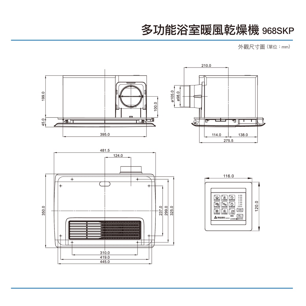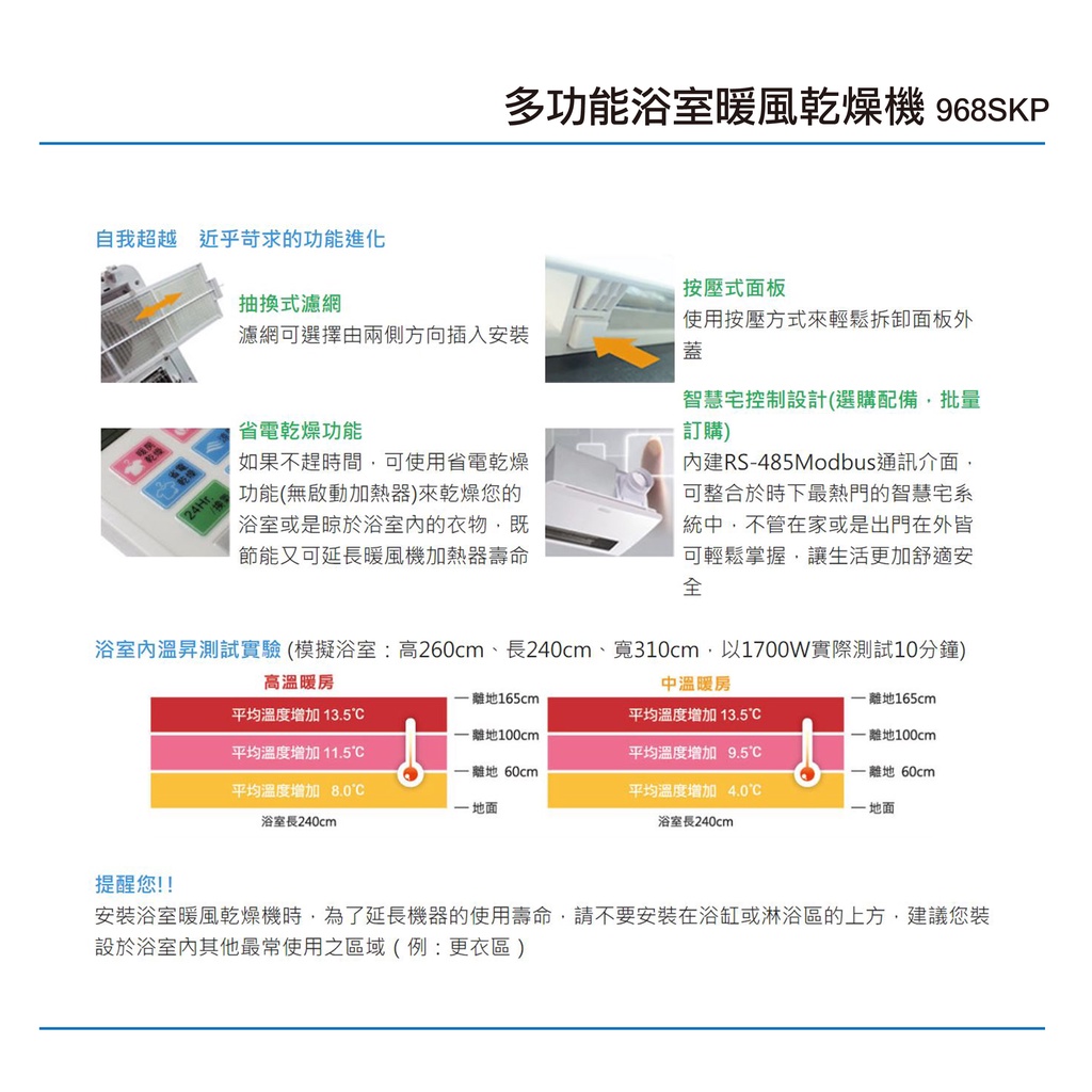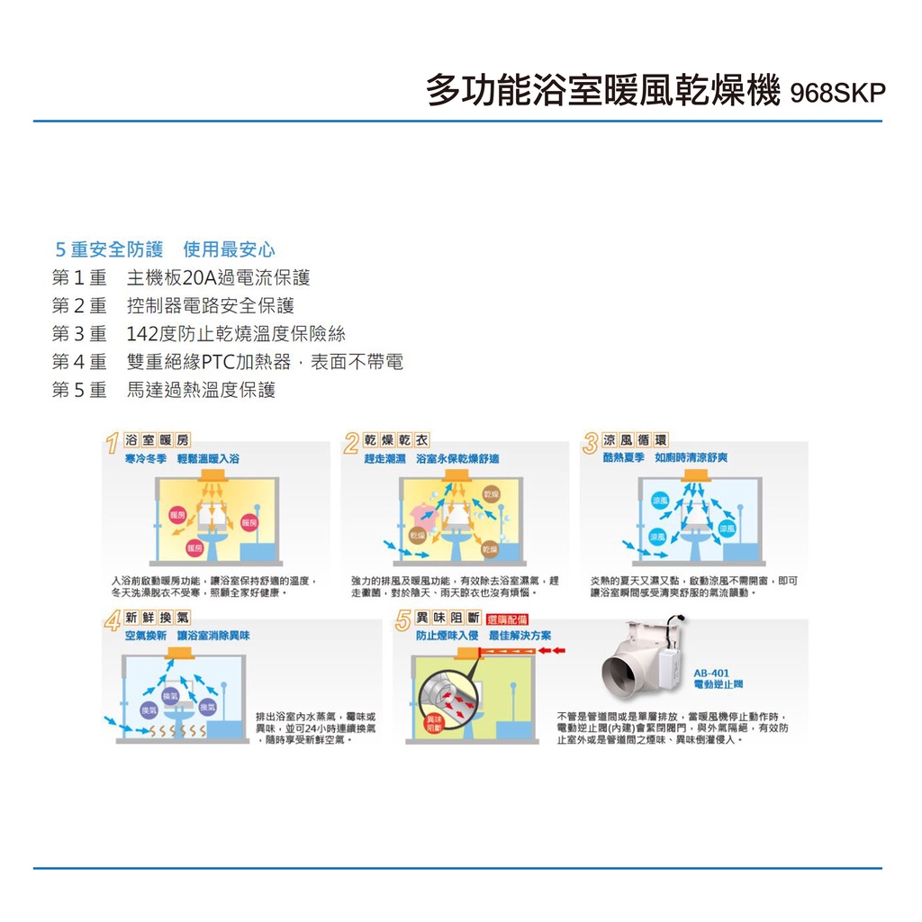 阿拉斯加 ALASKA 968SKP 多功能浴室暖風乾燥機 PTC系列 線控型 110V/220V