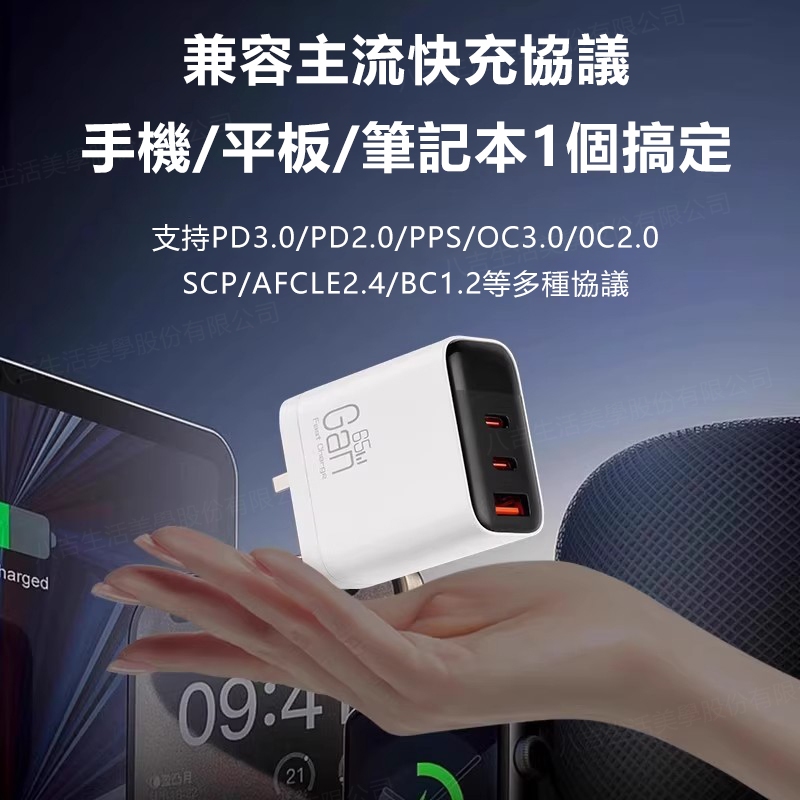 6H出貨🔥保固2年 65W充電頭 GAN氮化镓充電器 手機快充頭 豆腐頭 可充筆電 雙TypeC+USB 快充充電頭