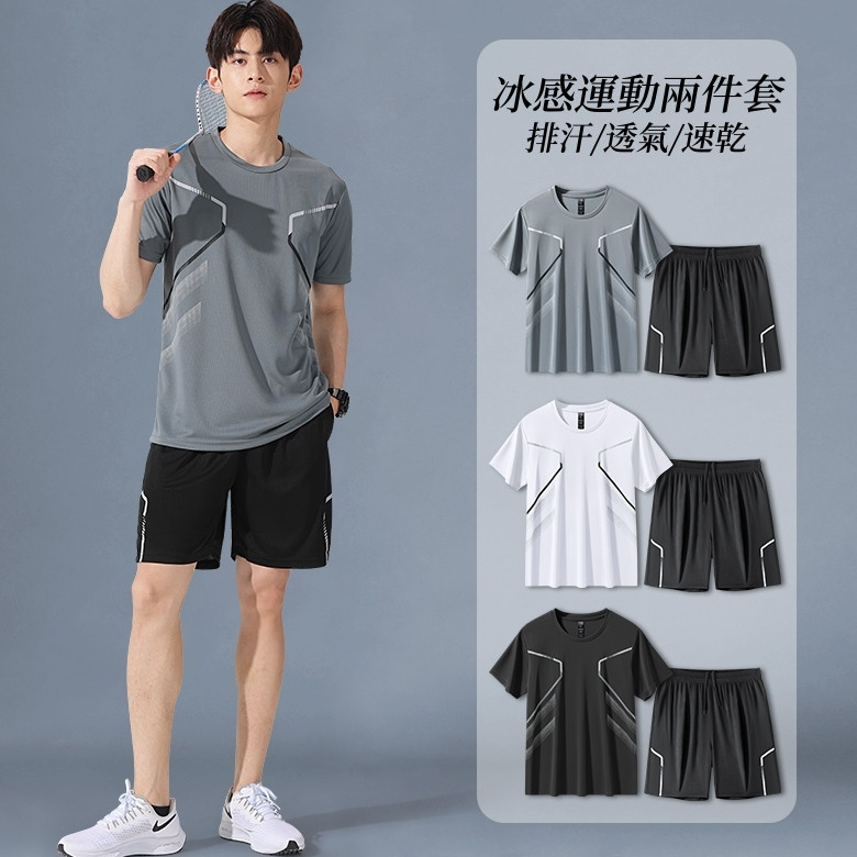 『免✨運+快✨出』跑步運動套裝 短袖速幹衣 健身服套裝 籃球訓練套裝 男女同款 寬鬆透氣 大碼運動兩件套 休閒套裝 吸濕