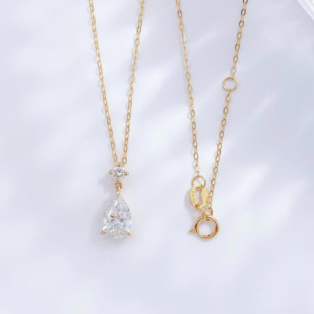 鉅曜 18K金 IGI 1克拉 露滴垂墜水滴鑽石項鏈 (培育鑽石 鑽石 項鍊)
