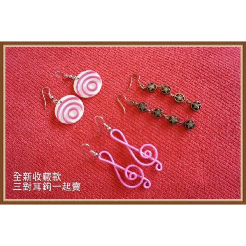 I25二手飾品 耳環耳勾組 三件一起賣 音符 螺旋 星星