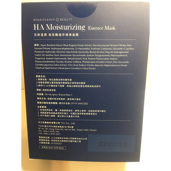 玻尿酸面膜 大江生醫 25ml/8包/盒