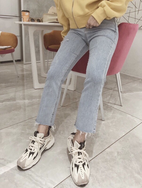 正韓 Armora ju 破損修身剪裁牛仔褲 S號 miyuki 割破直筒牛仔褲