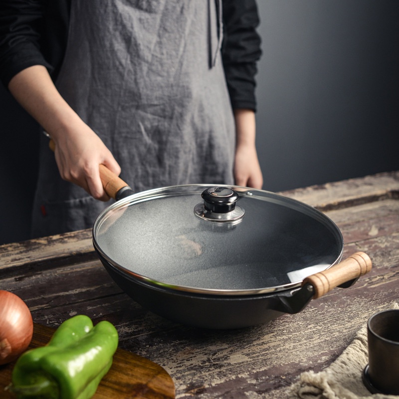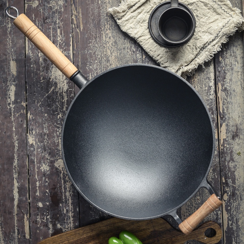 【小山】鑄鐵家用炒鍋多功能炒菜鍋老式生鐵鍋無塗層不粘鍋圓底燃氣竈適用