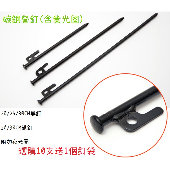 三露購物 營釘 夜光營釘 天幕營釘 帳篷釘 黑釘 夜光大黑釘 鋼釘 (10支送地釘袋)