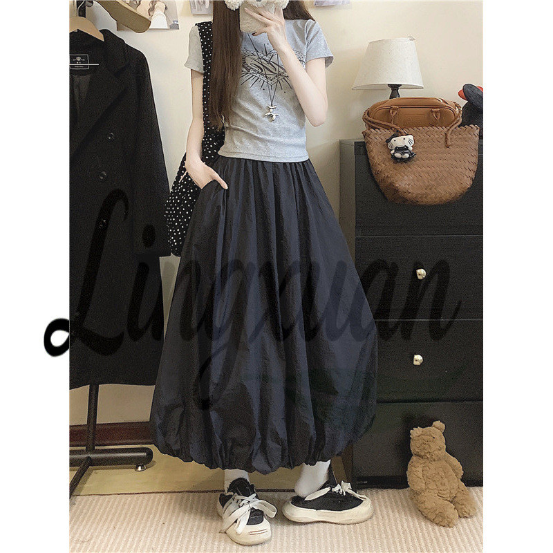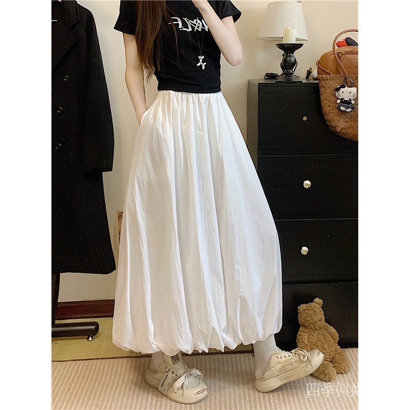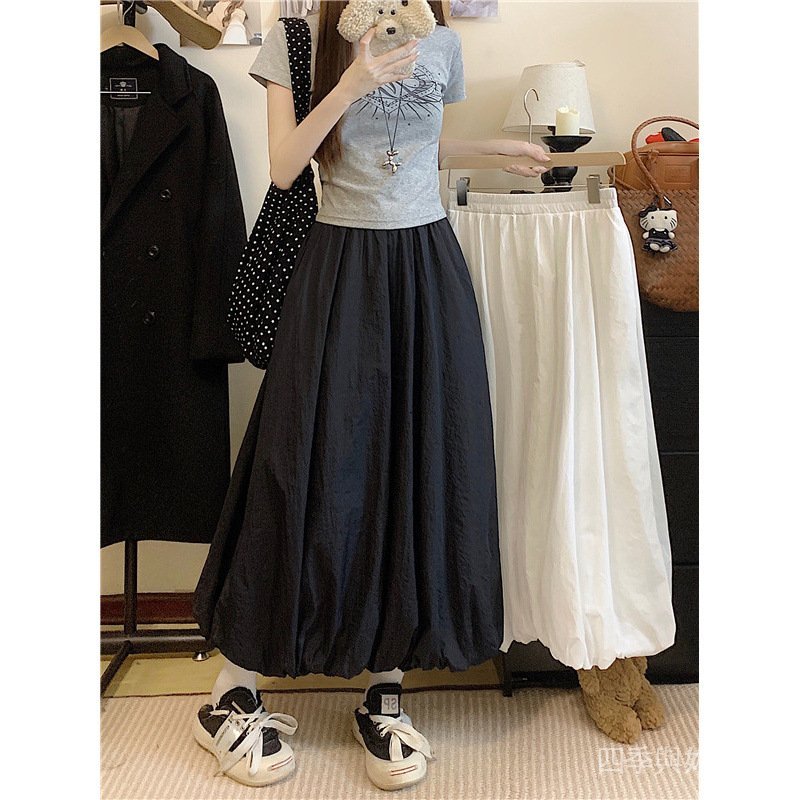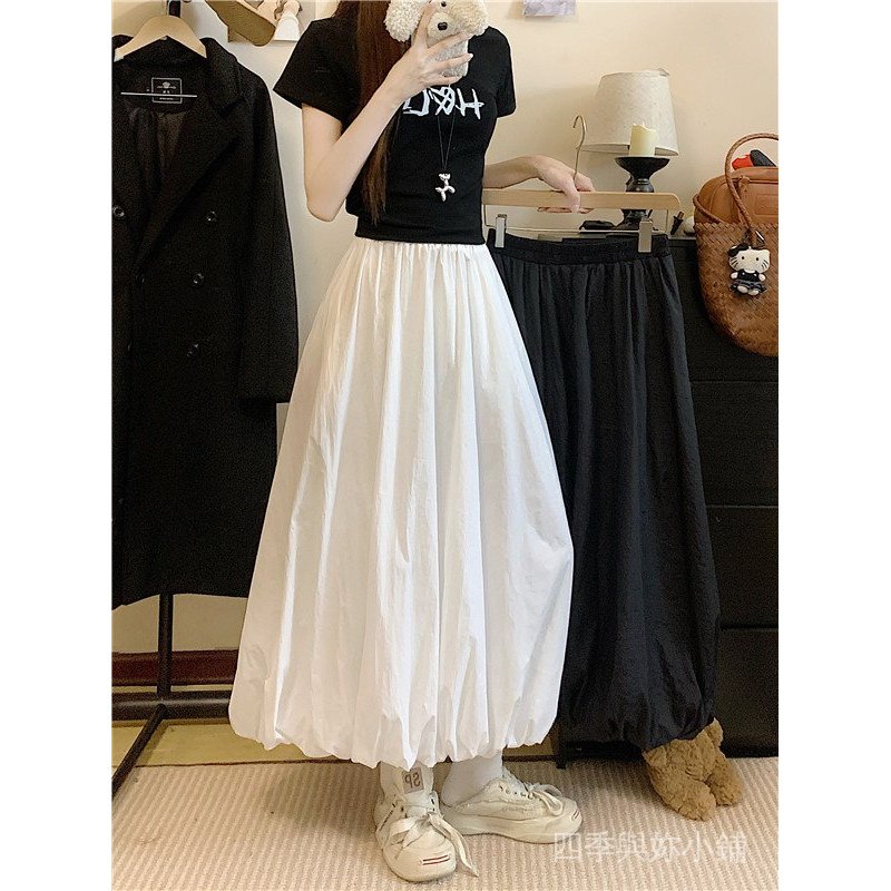 【YIYI】臺灣出貨 免運 花苞長裙女夏 夏季新款設計感純色花苞裙長裙a字夏季高腰顯瘦半身裙百搭女 UXPF