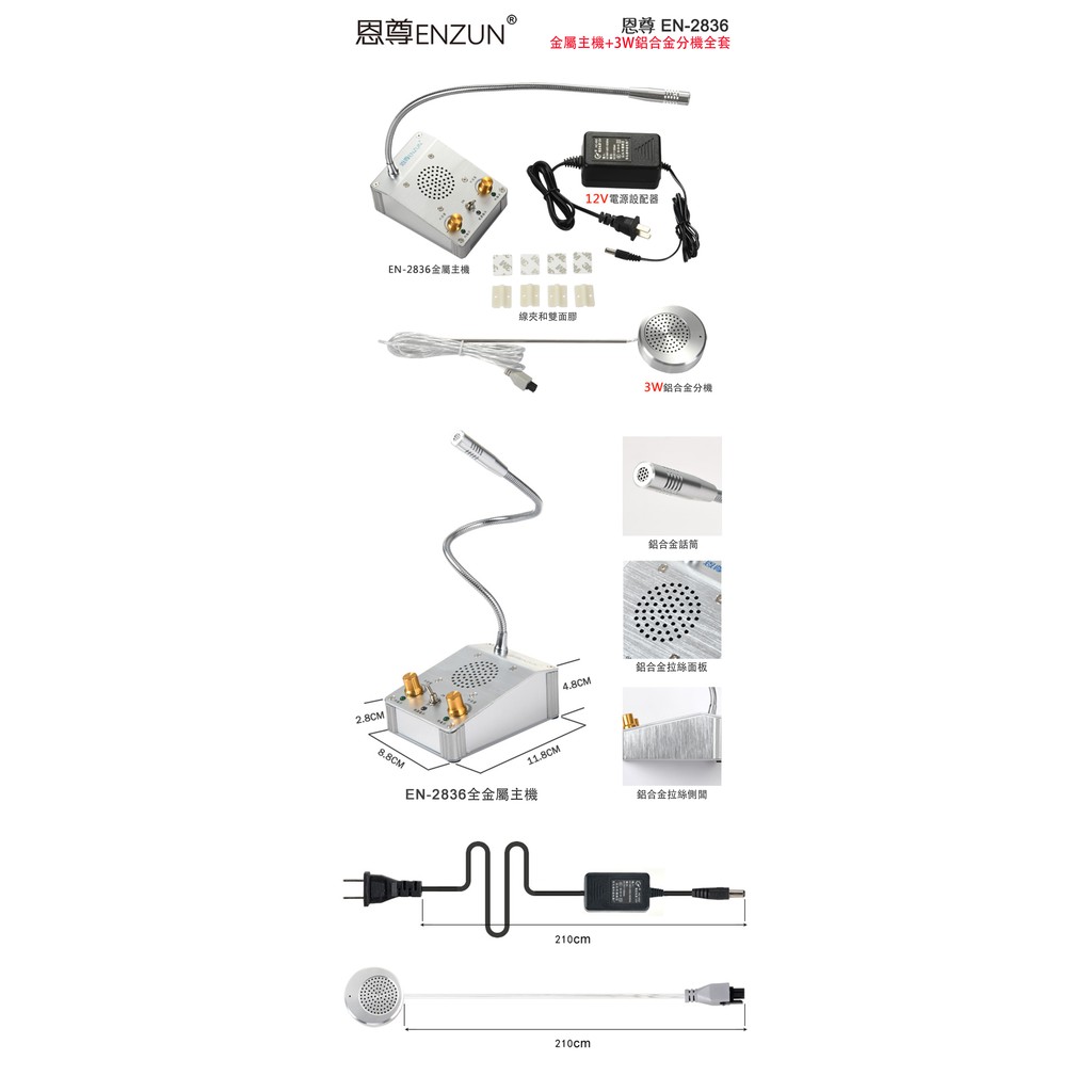 【發票+保固】對講機 恩尊EN-2836窗口 雙向對講機 喇叭 擴音喇叭 銀行柜台 收銀台 醫院車站收費擴音器 大功率