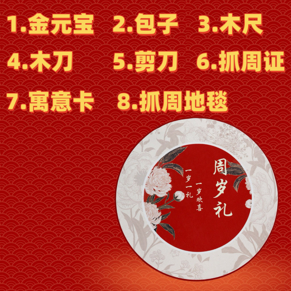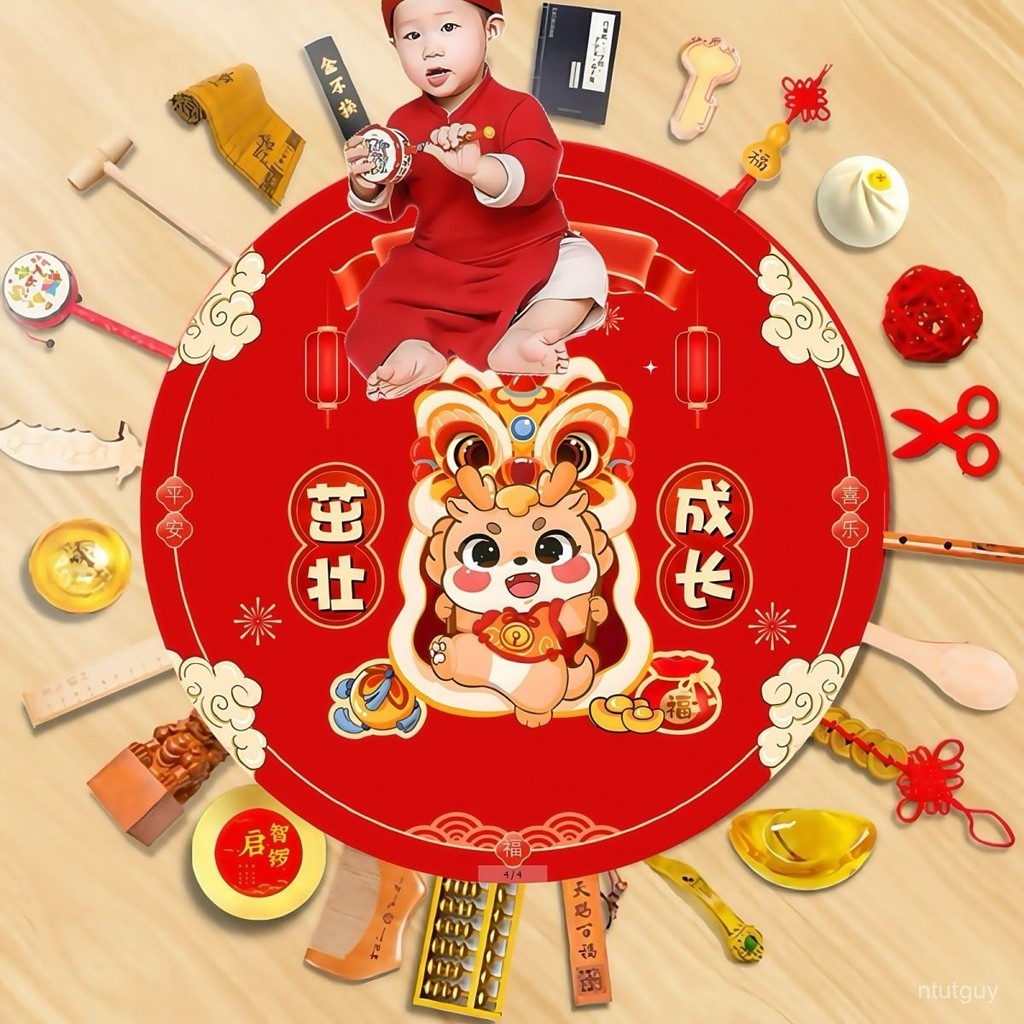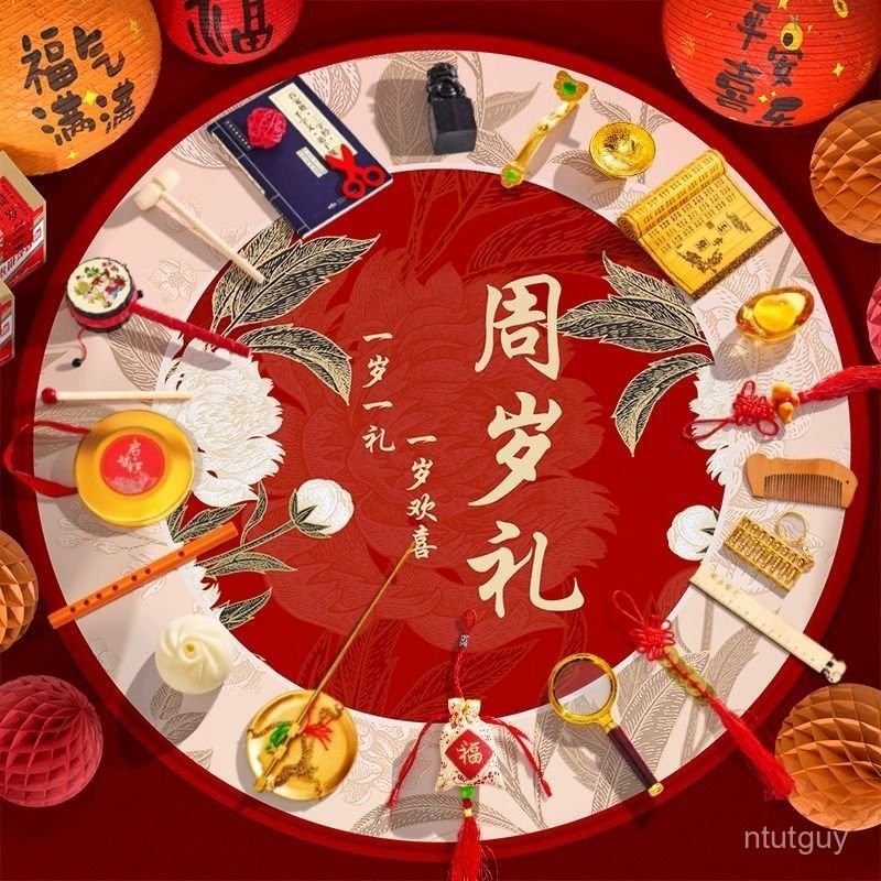 抓週道具一週嵗儀式用品布置圓地墊現代中式抓鬮生日地毯套餐 ZASC