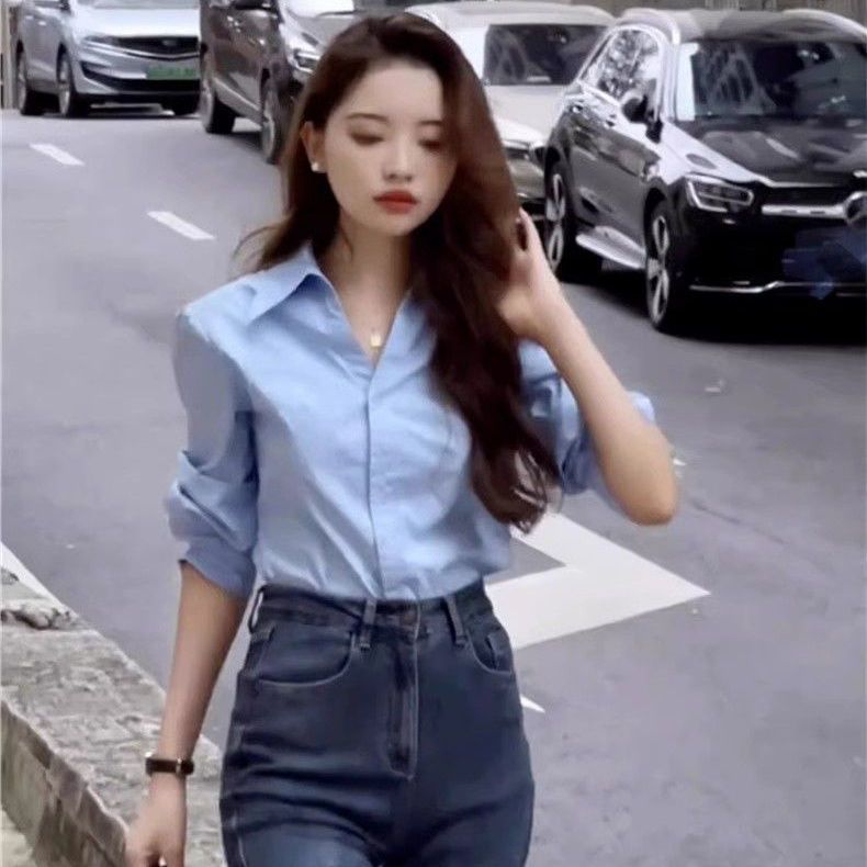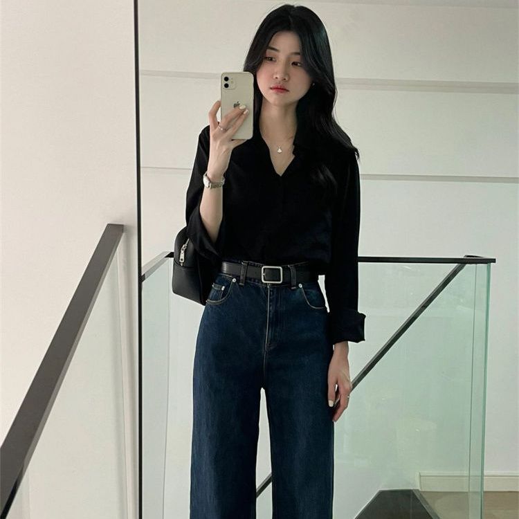 【精選】 襯衫 長袖 顯瘦 秋冬款 黑色襯衫女長袖春秋款設計感小個子休閒上衣寬鬆垂感襯衣女打底衫