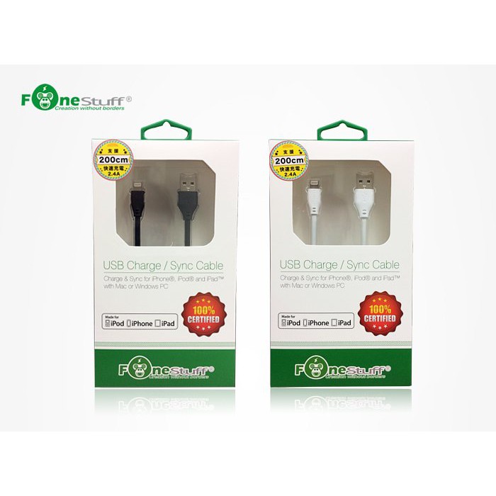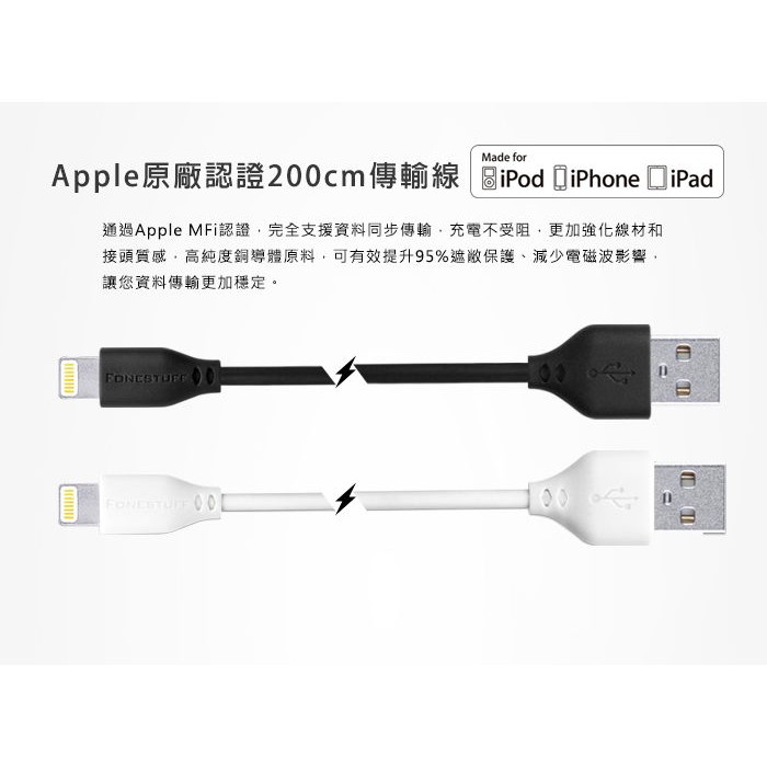 ★摩兒電腦☆FONESTUFF FSL200 IPhone認證線 蘋果認證線 2米充電傳輸線 IPHONE充電認證線