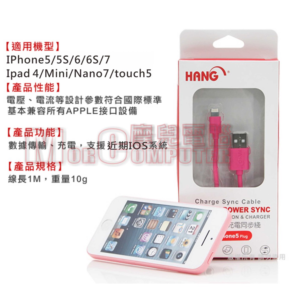 ★摩兒電腦☆高雄實體店家★HANG IPhone充電線 USB充電線 蘋果充電線 蘋果快充線 1米