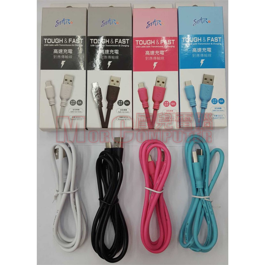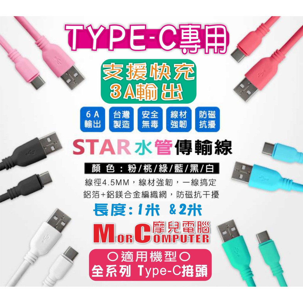 ★摩兒電腦☆STAR水管線 Type-C 台灣製造 6A 高速充電傳輸 水管線 1米 2米 QC快充 安卓快充線 傳輸線