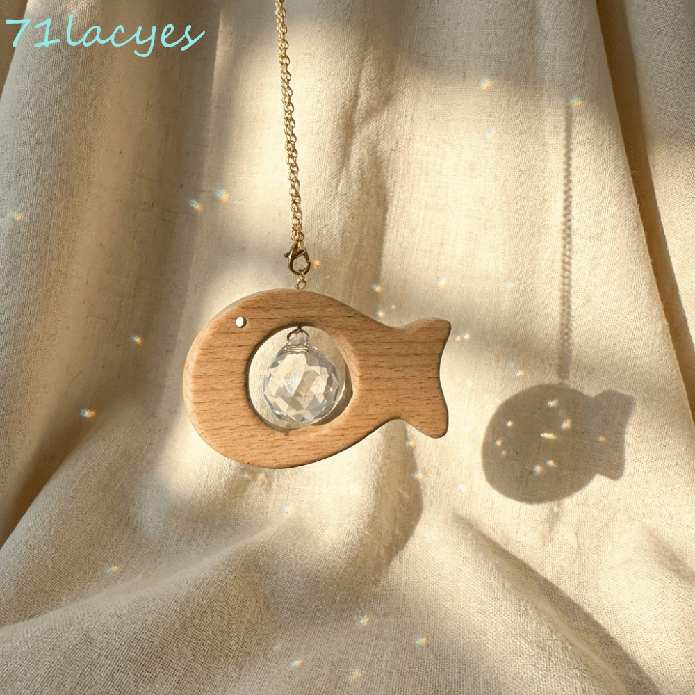 LACYES Sunlight Catcher 風鈴,木製玻璃陽光反射彩虹製造商,金魚旋轉裝飾創意懸掛太陽捕手花園裝飾