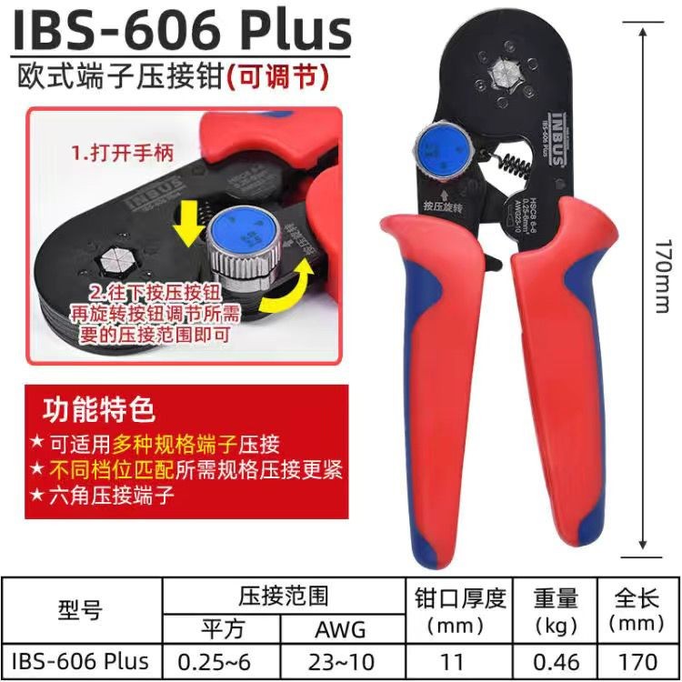【臺灣熱賣】進口INBUS壓線鉗歐式端子省力針型多功能絕緣冷壓電工專用接線鉗《優選》【WJ】