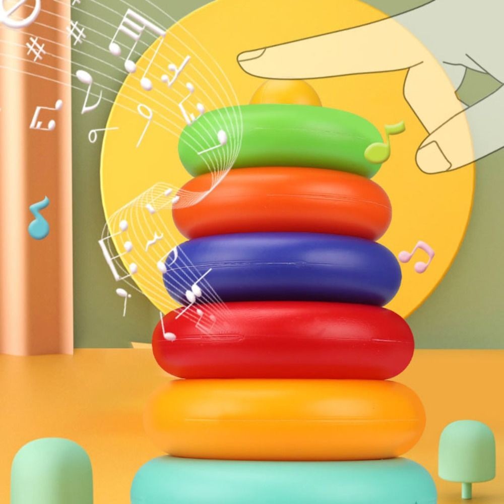 DARON 堆疊環嬰兒玩具,可堆疊彩虹塔彩虹堆疊音樂玩具,塑料套圈早教感官堆疊插接玩具兒童節派對