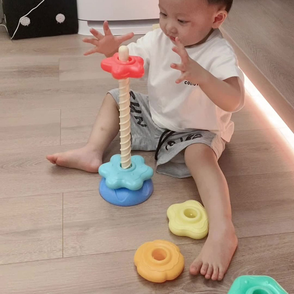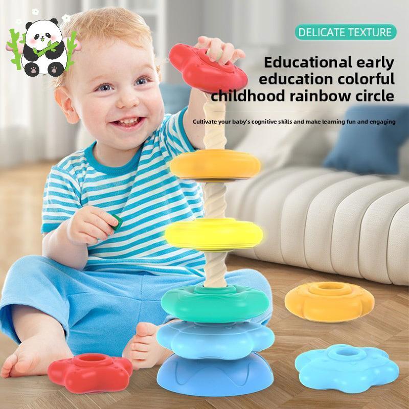 嬰兒玩具堆疊環旋轉堆疊環玩具 - 彩虹積木活動立方體塔