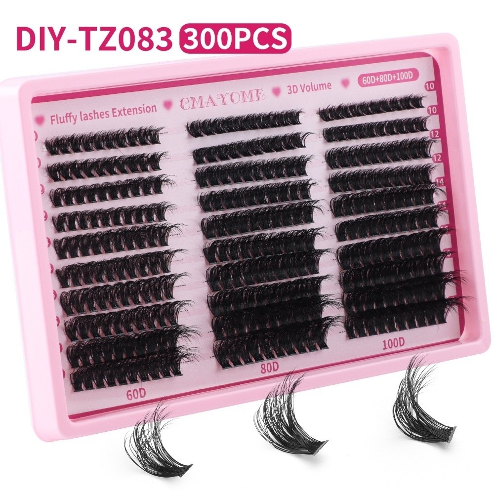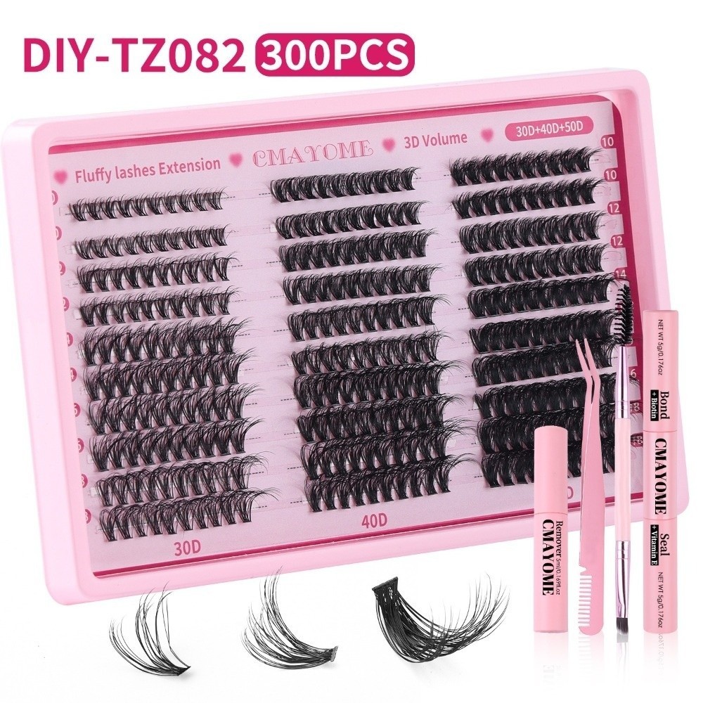 EBINLANDS 300 片假睫毛,粘合和密封自然妝容卷睫毛,30 排大容量 8-18 毫米混合簇設計膠水睫毛易於應用