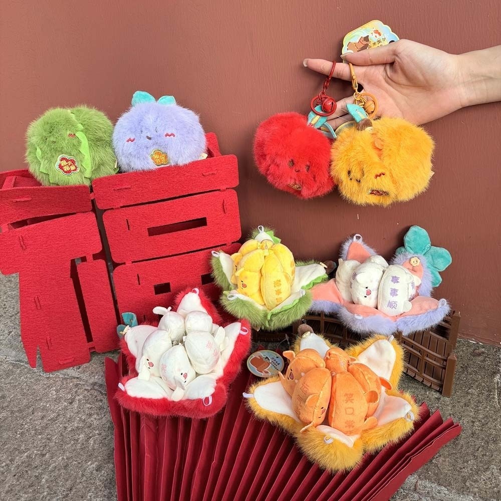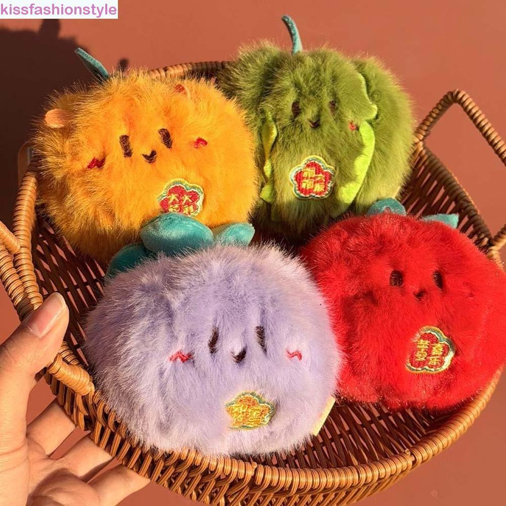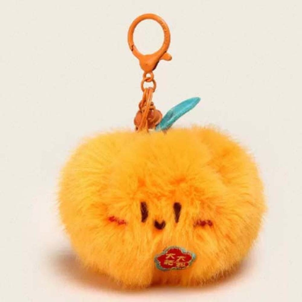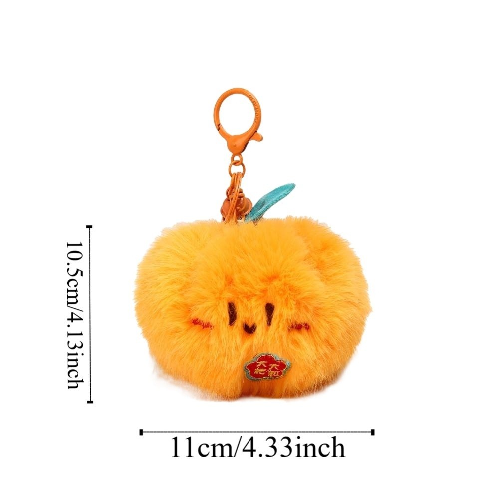 KISSFASHIONSTYLE 創意橘色鑰匙圈山竹榴蓮可剝水果鑰匙扣創意可愛卡通滌綸毛絨公仔挂件女