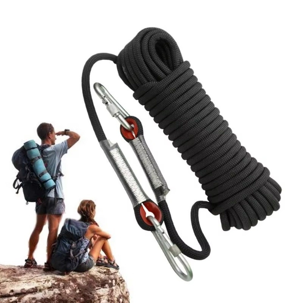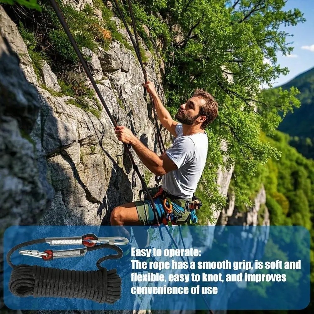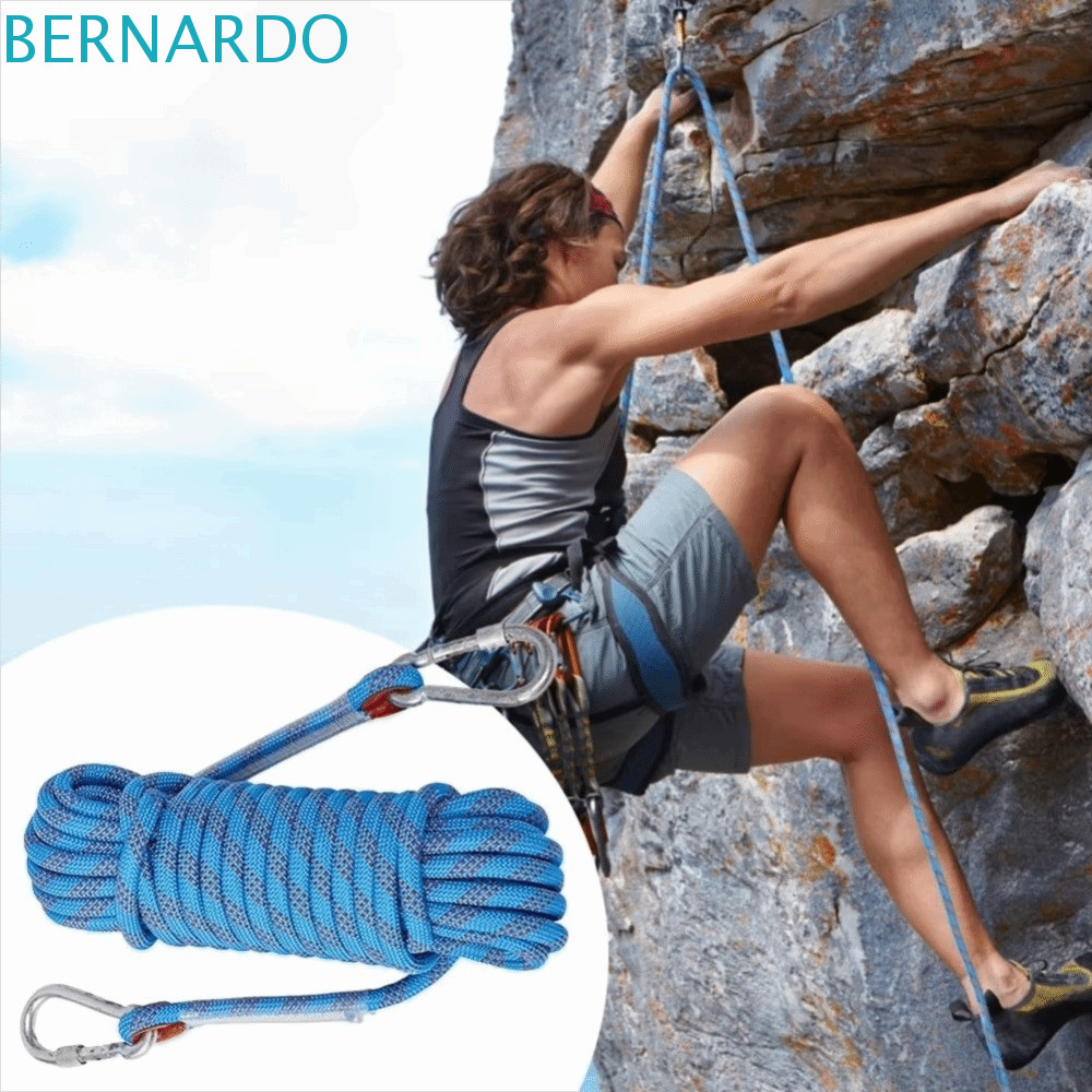 BERNARDO 安全救生繩,加厚 10 毫米高強度攀岩繩,配件安全靜態帶 2 個鋼鉤登山繩攀岩運動