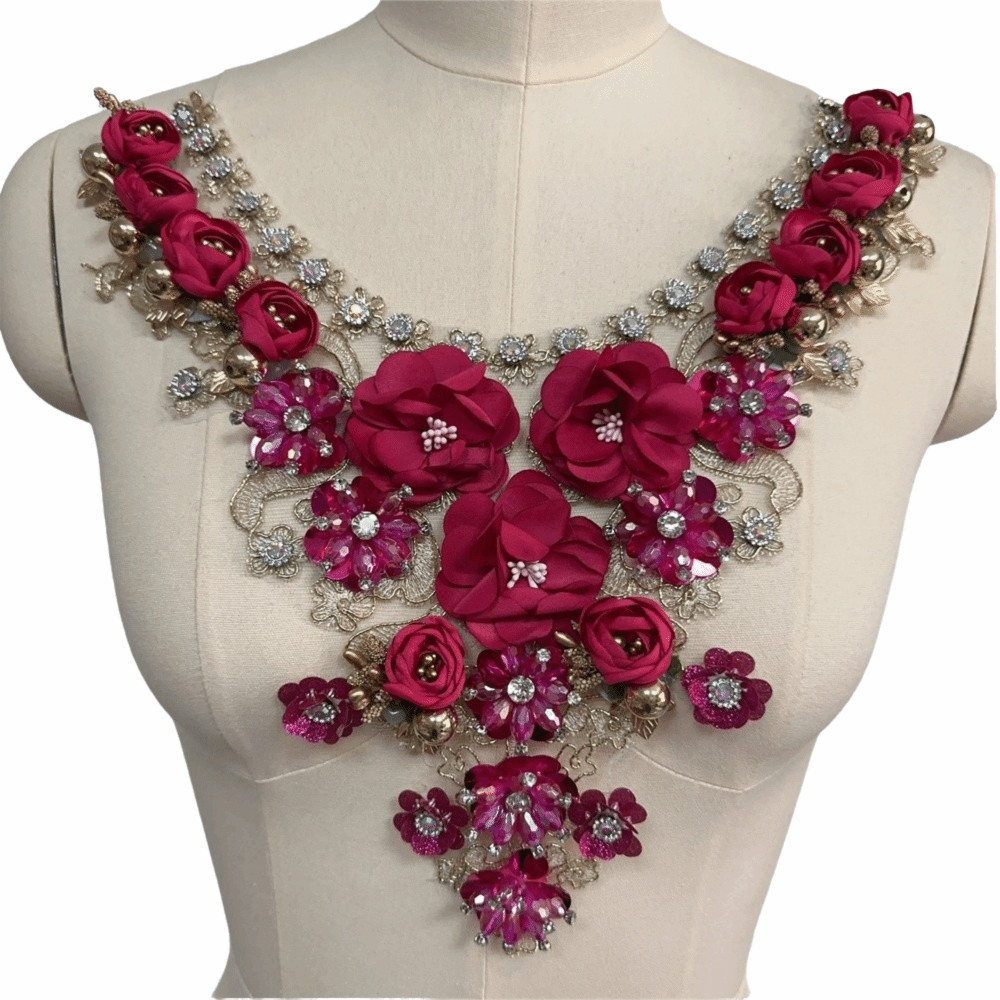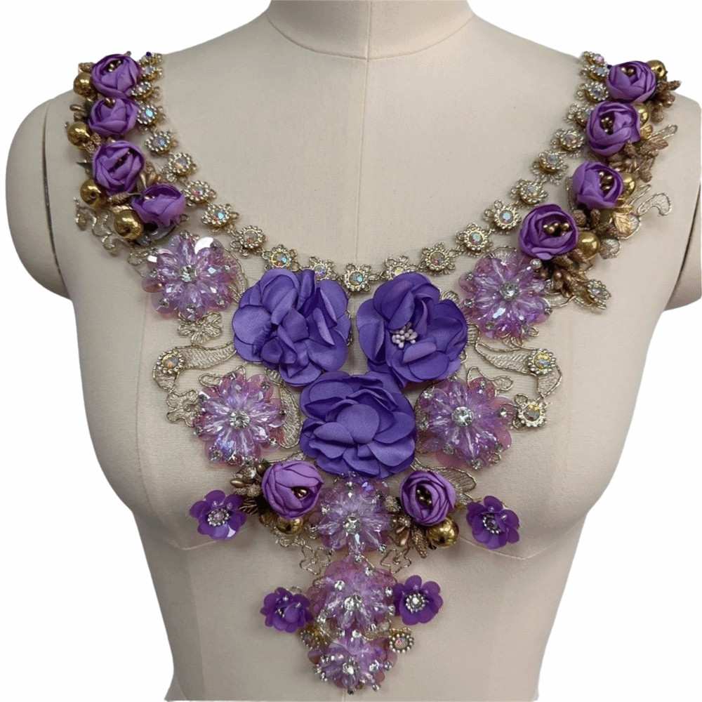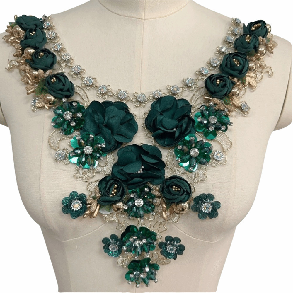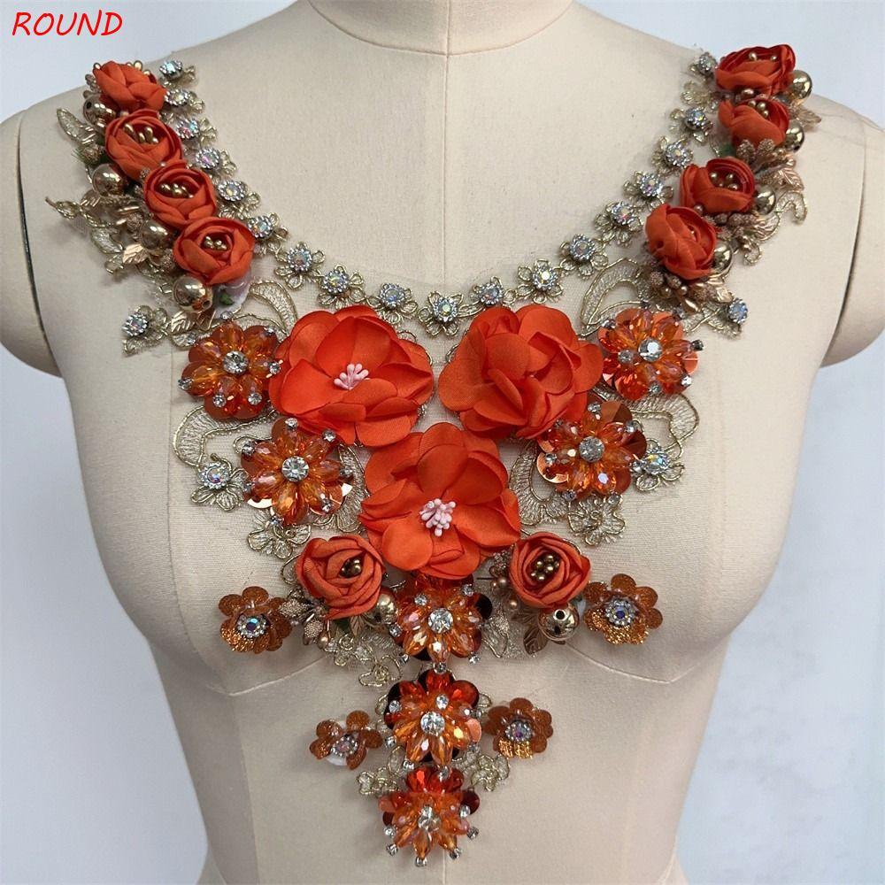 ROUND 刺繡花領,蕾絲縫紉貼花時尚假領,多用途 3D 花貼花柔軟別緻刺繡蕾絲裝飾領口領服裝配飾