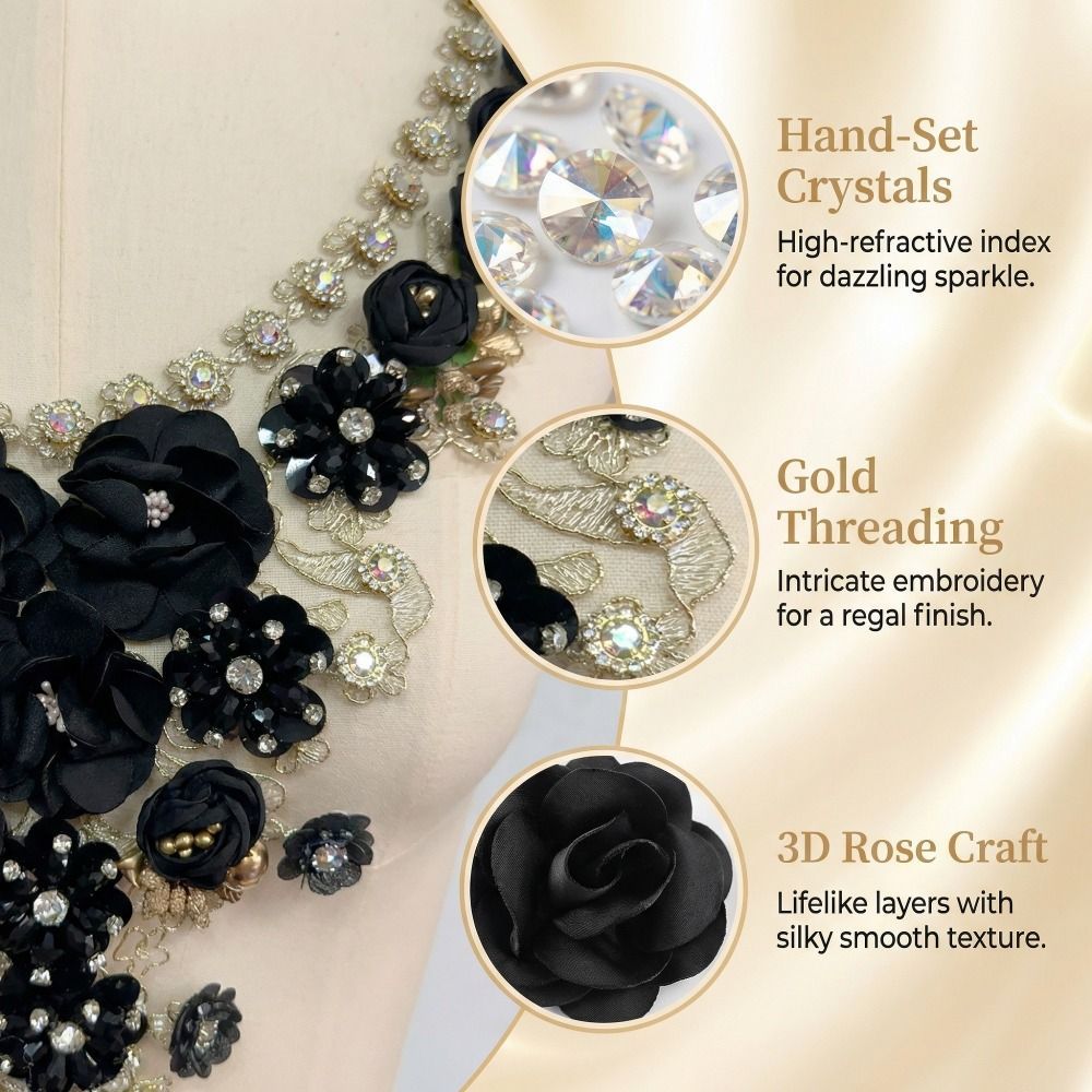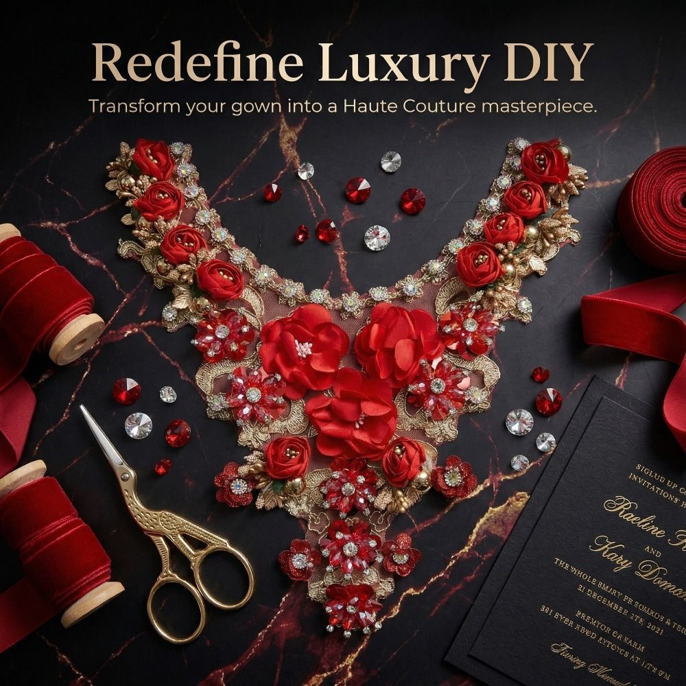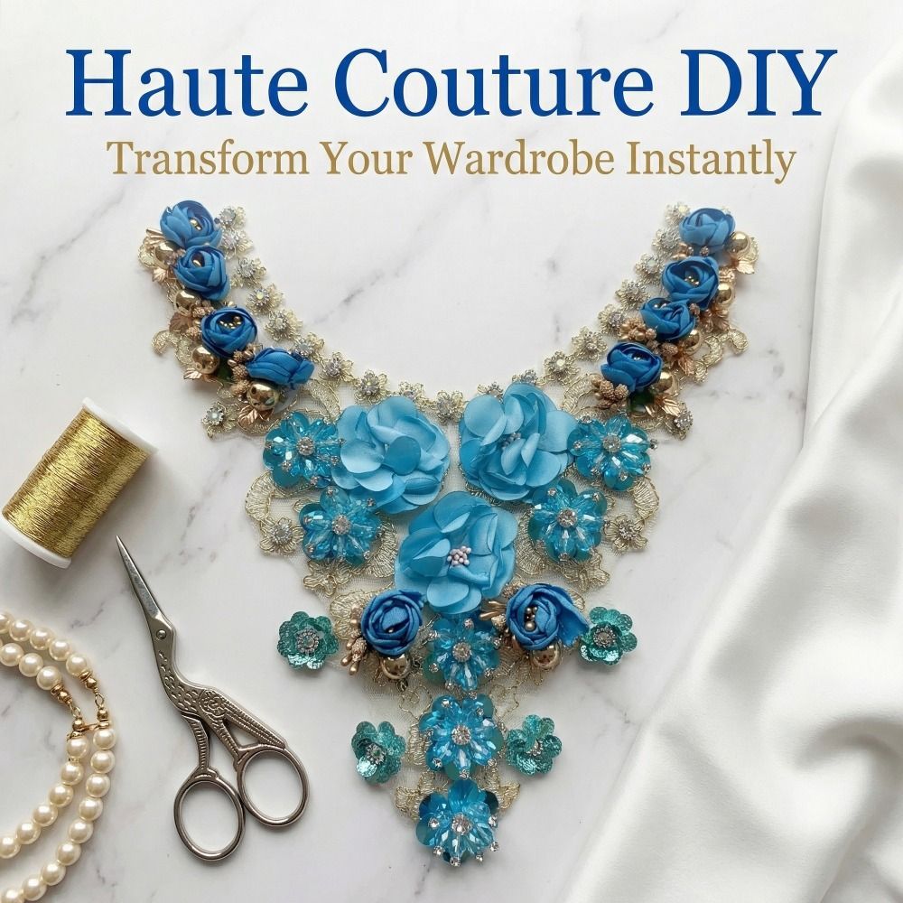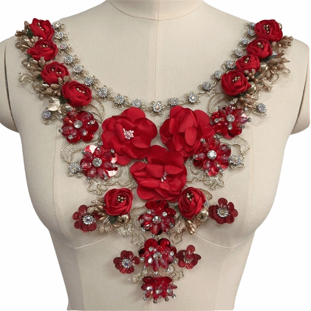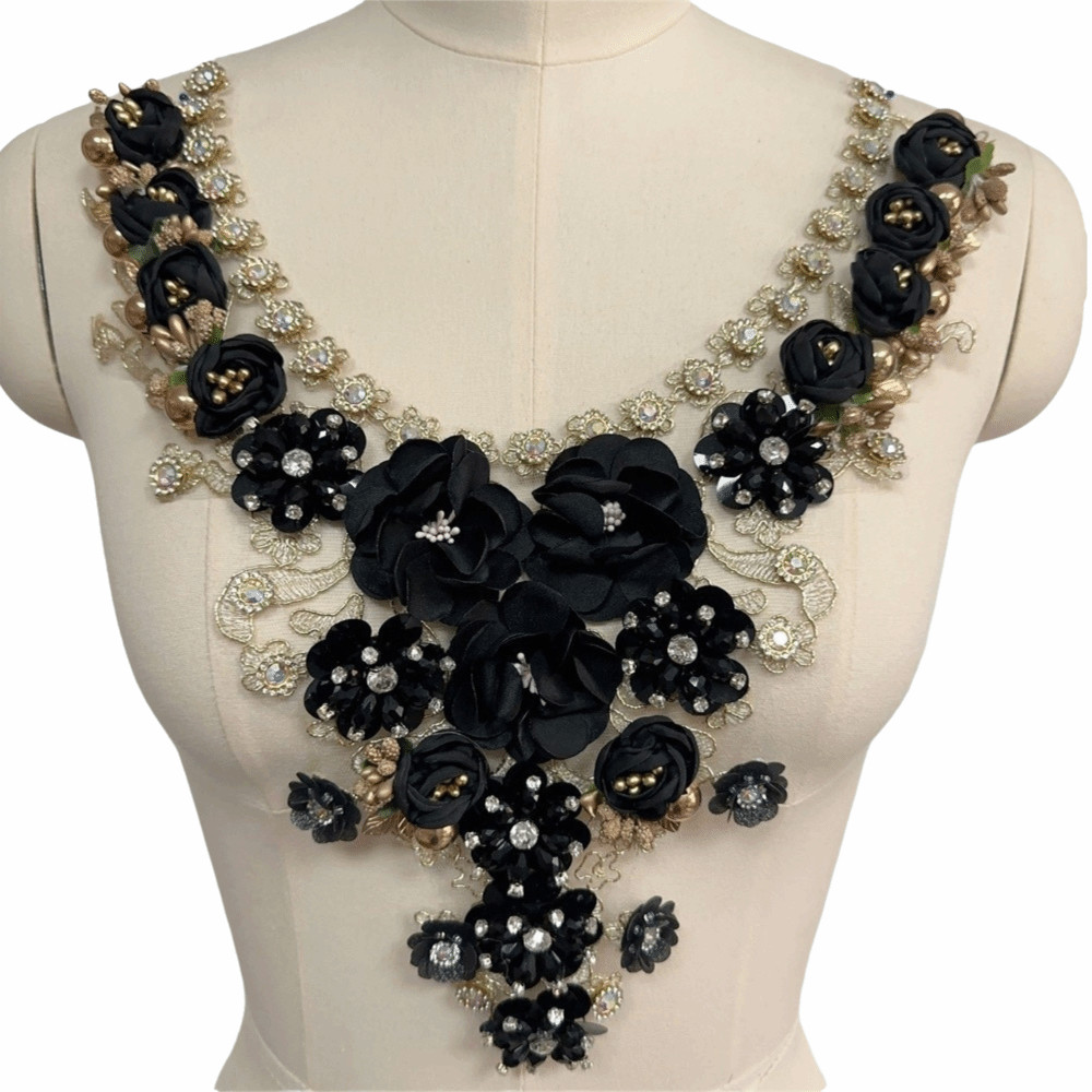 ROUND 刺繡花領,蕾絲縫紉貼花時尚假領,多用途 3D 花貼花柔軟別緻刺繡蕾絲裝飾領口領服裝配飾