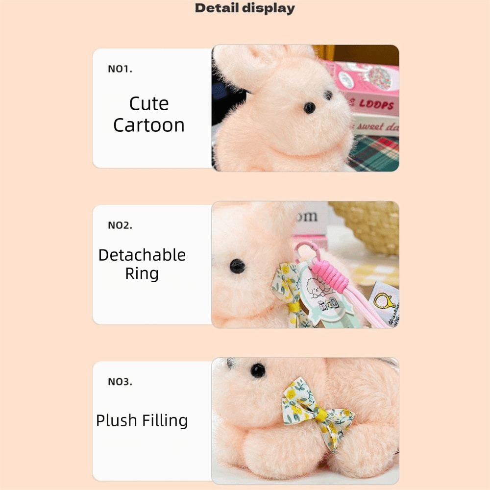 PERRY 毛絨蝴蝶結兔子鑰匙扣,裝飾蓬鬆紋理填充鑰匙扣,卡哇伊毛絨材料包魅力娃娃兔子包挂件包配件
