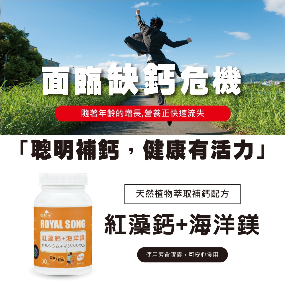 御松田|紅藻鈣+海洋鎂(30粒/瓶)|保健 保健食品 營養品 機能性食品 鈣 鈣片 海藻鈣 海洋鎂 鎂 全素