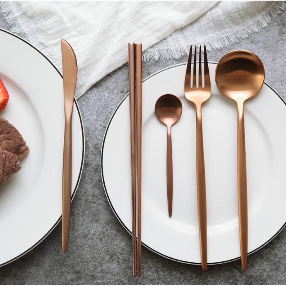 ❤️【 歐風玫瑰金餐具】304不鏽鋼 環保餐具 玫瑰金 叉子 湯匙 筷子 餐刀 葡萄牙餐具 北歐餐具 台灣現貨 091