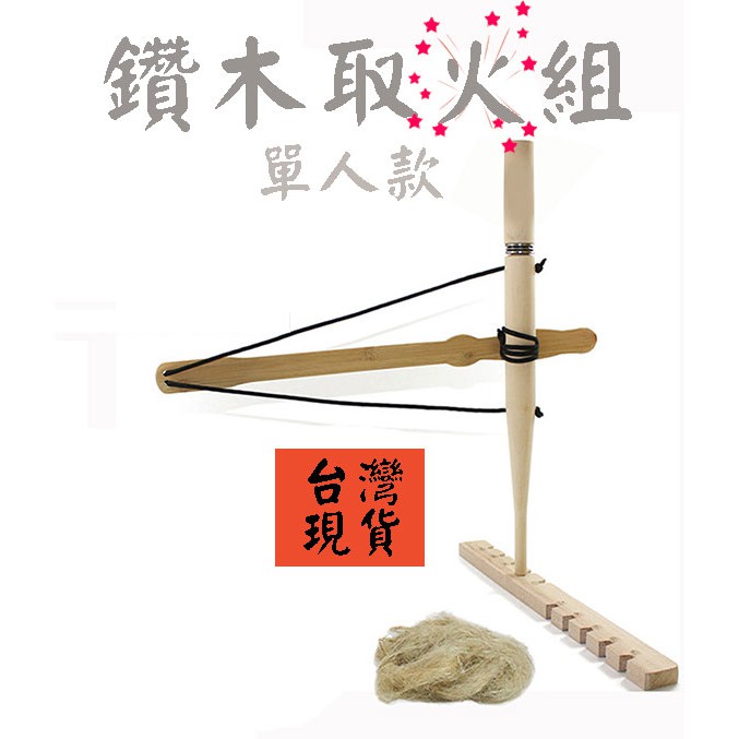 【台灣現貨】鑽木取火 單人 生火 取火 點火 起火 野炊 生火教學 童軍 生火訓練 童軍教學器材 野營 露營