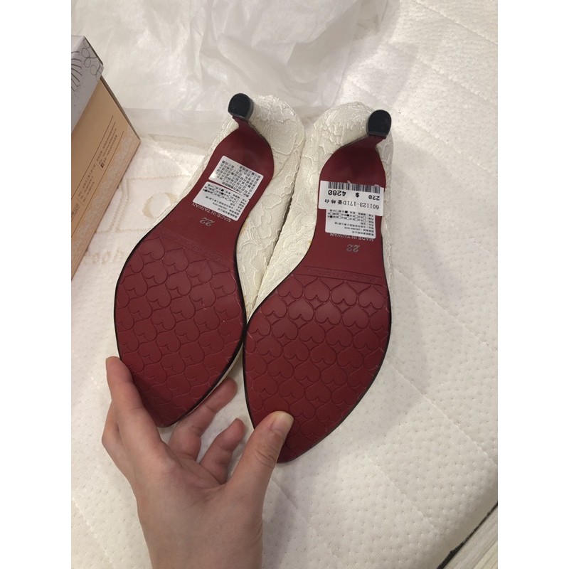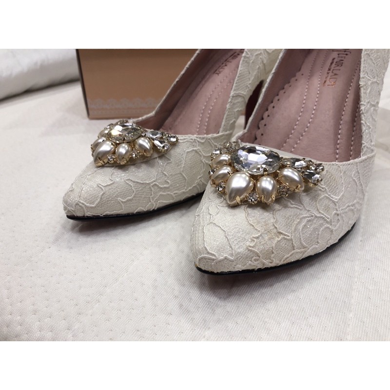 Fair Lady全新 白色蕾絲立體寶石 高跟鞋/婚鞋