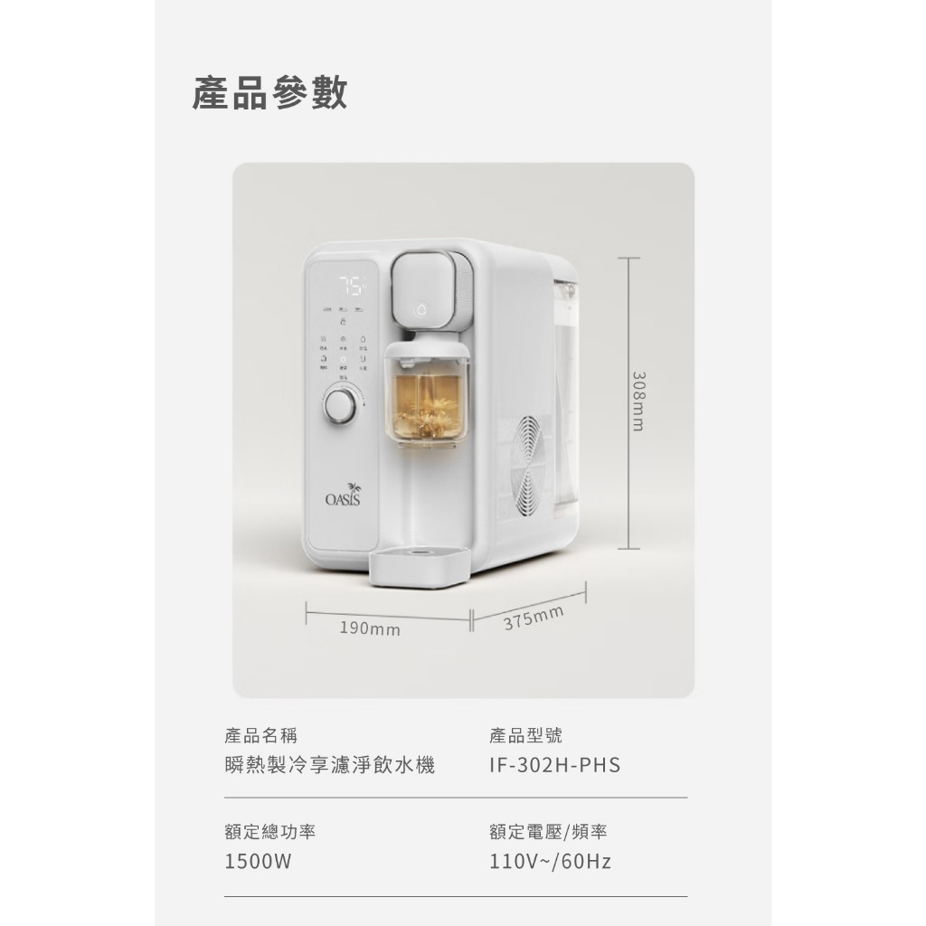 【美國OASIS】瞬熱製冷雙享濾淨飲水機 雙享Bar IF-302H-PHS UVC殺菌 泡茶咖啡冰溫熱五合一 免安裝