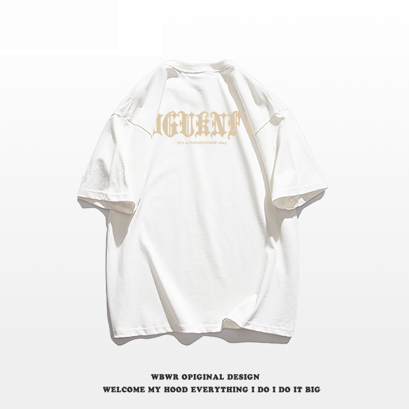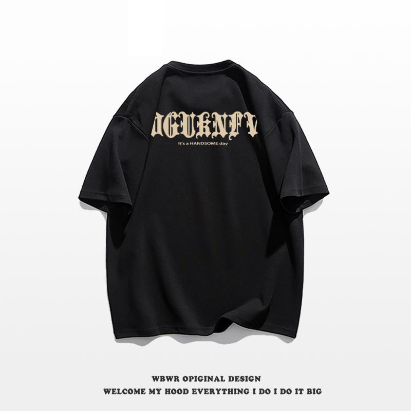 【現貨!當天出】重磅純棉t恤美式復古纯棉短袖t恤男夏季新款嘻哈潮牌字母印花酒红色短袖加大尺碼重磅落肩上衣短t