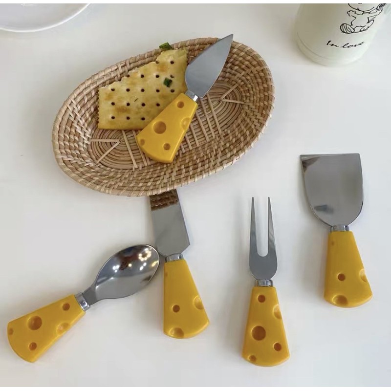 起司造型刀叉組 乳酪刀叉餐具 乳酪刀叉 餐具 湯匙 刀子 叉子 鍋鏟 平刀 奶油刀 方形刀 尖刀 可愛餐具 下午茶 攝影