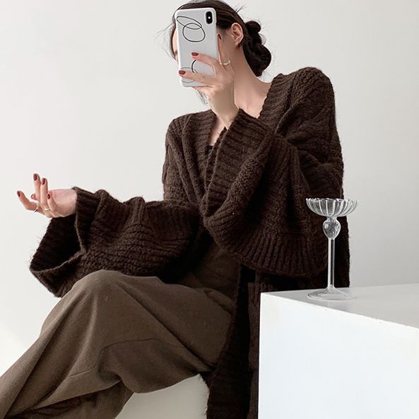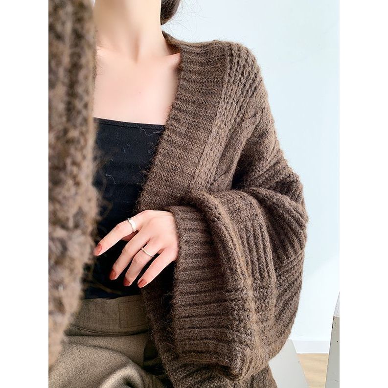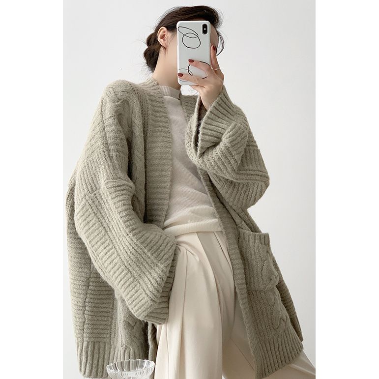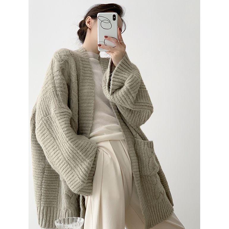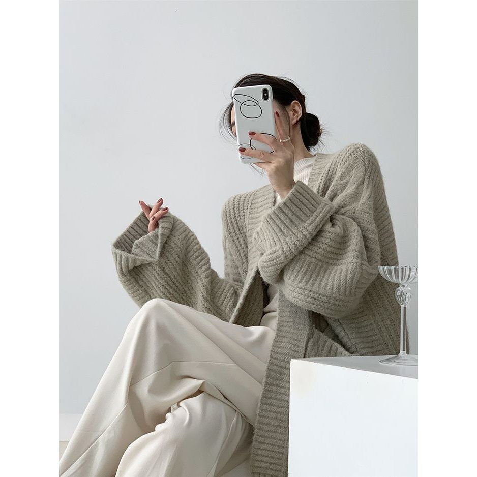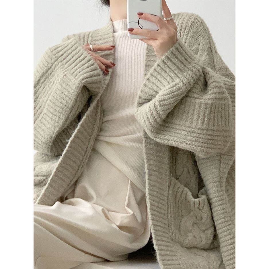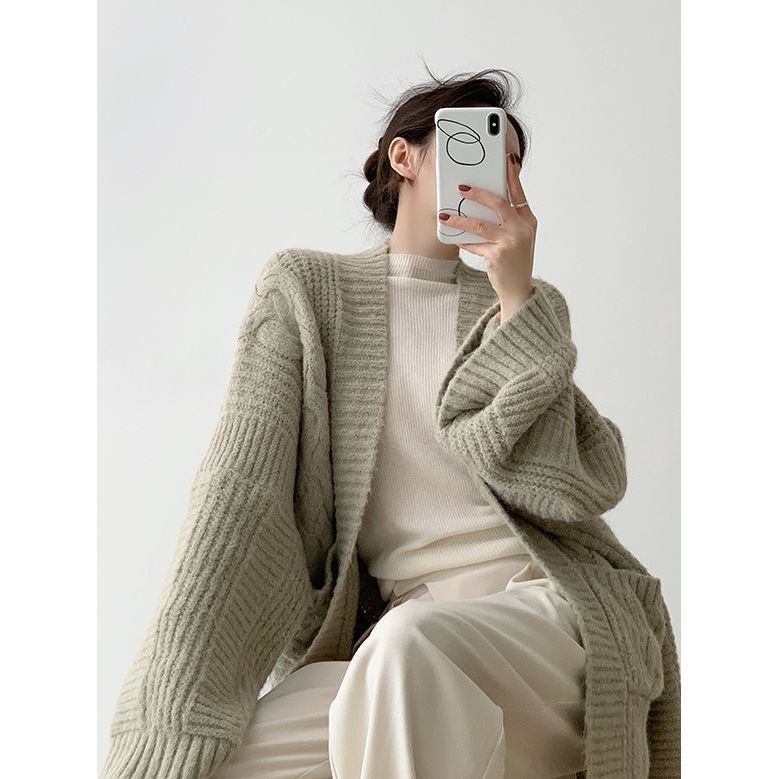 慵懒风软糯针织外套开衫中长款秋冬新款加厚宽松慵懒风毛衣女上衣
