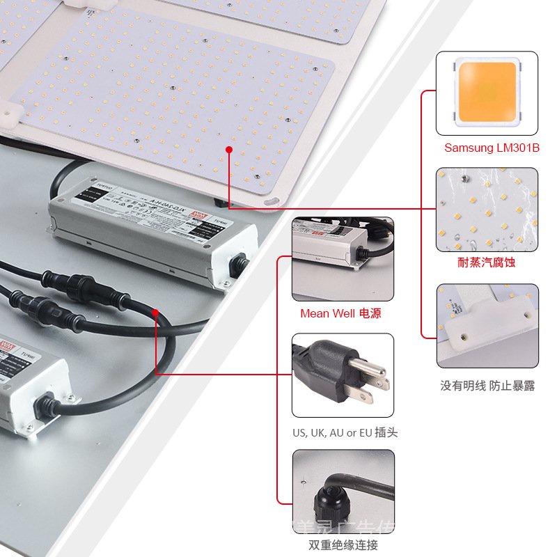 grow led light植物生長燈西紅柿超薄補光4四頭植物燈400w瓦450w 301h 301b三星燈珠 UQCN