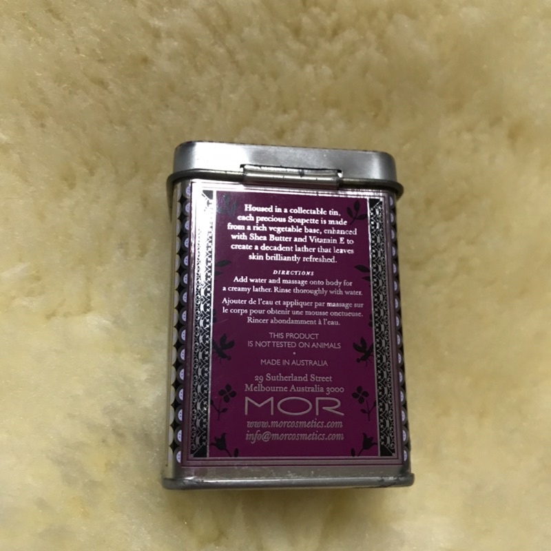 澳洲 MOR Cassis Noir Soapette 黑 醋栗香皂in Tin 2.1 oz 60g